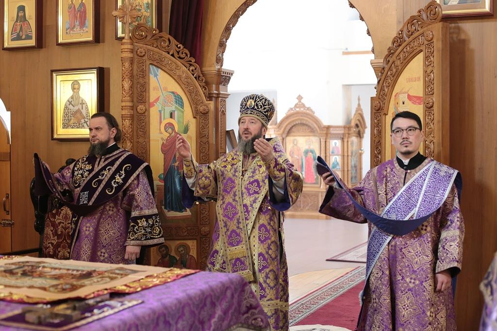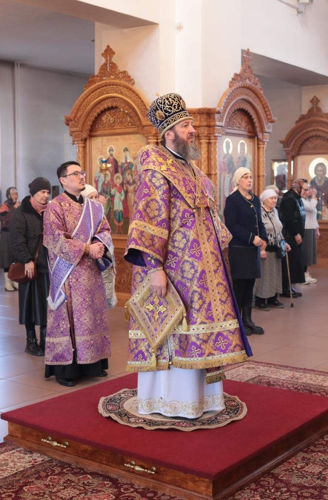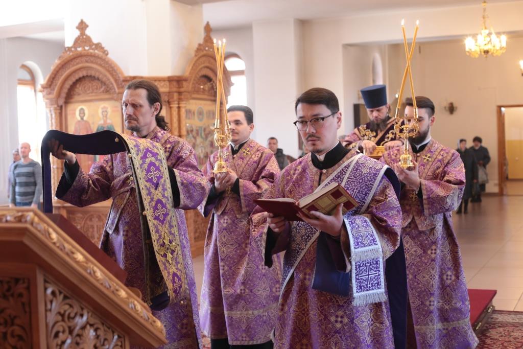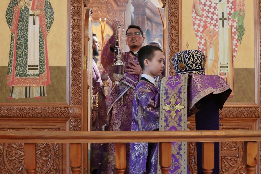 Литургические песнопения исполнял хор кафедрального собора под управлением регента Н. Романцовой. За архипастырским богослужением молились и причащались Святых Христовых Таин насельники Свято- Троицкого мужского монастыря города Усть-Каменогорска, сотрудники епархиального управления и прихожане кафедрального собора. Проповедь перед причастием мирян произнёс священник Роман Подрезов.
