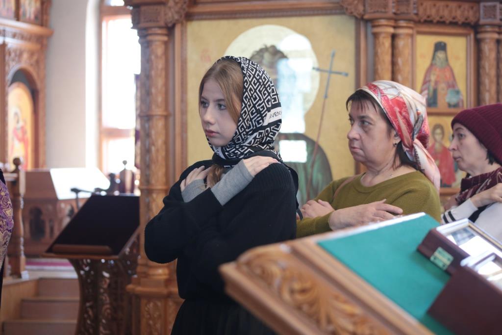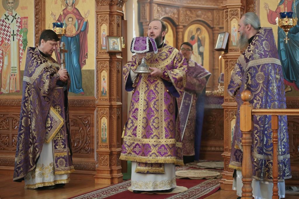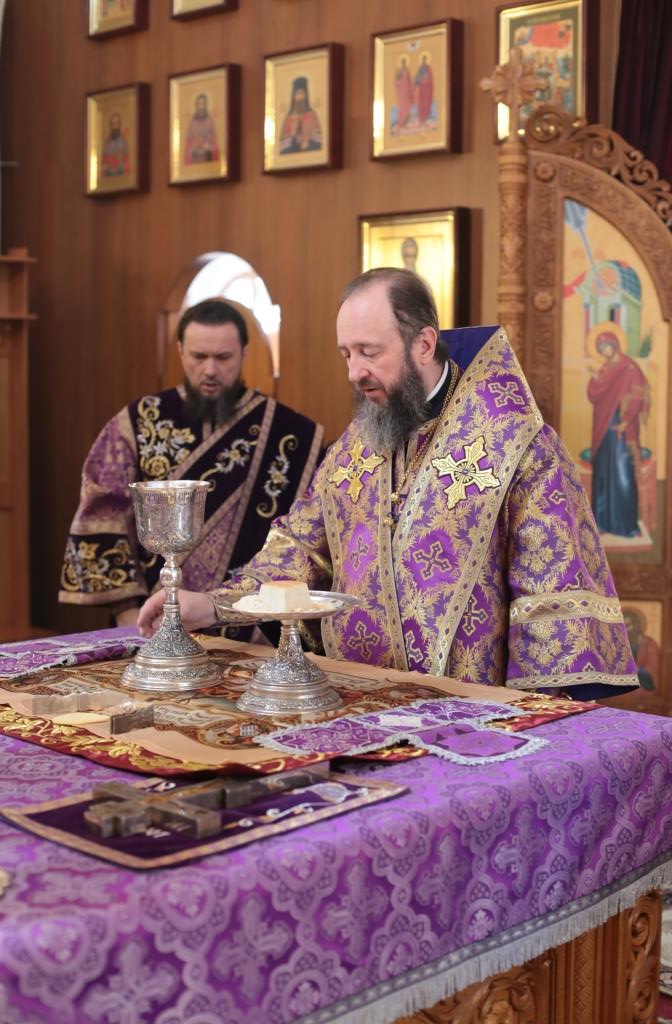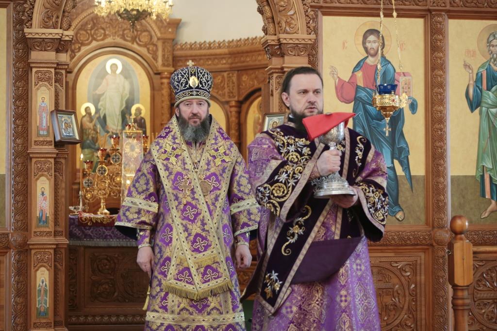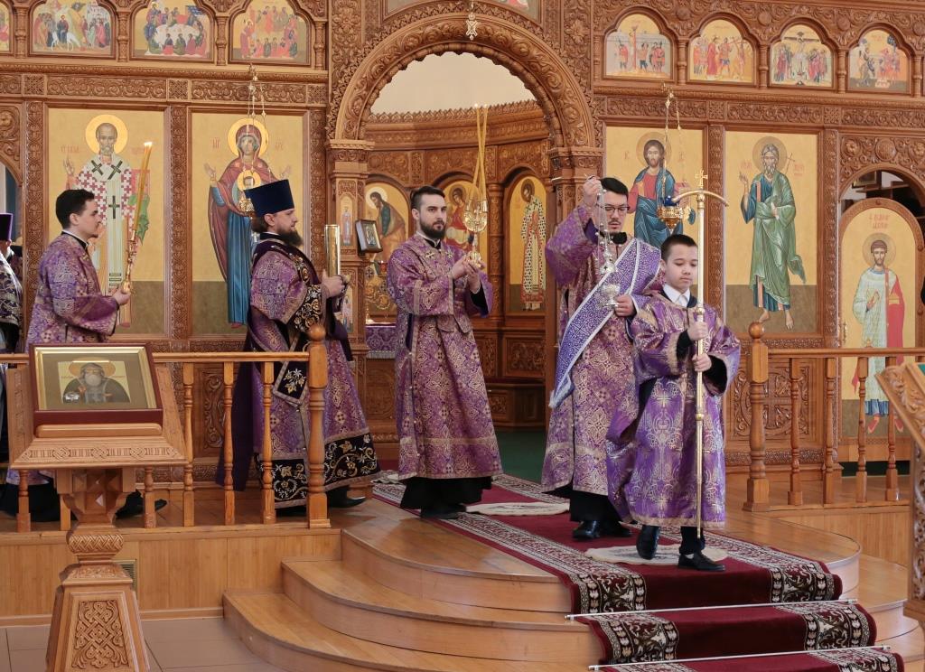 Литургические песнопения исполнял хор кафедрального собора под управлением регента Н. Романцовой. За архипастырским богослужением молились и причащались Святых Христовых Таин насельники Свято- Троицкого мужского монастыря города Усть-Каменогорска, сотрудники епархиального управления и прихожане кафедрального собора. Проповедь перед причастием мирян произнёс священник Роман Подрезов.