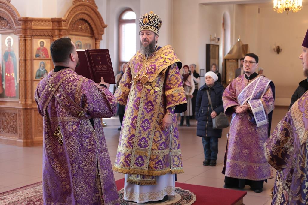 Высокопреосвященнейший архиепископ Усть-Каменогорский и Семипалатинский Амфилохий совершил Божественную Литургию святителя Иоанна Златоуста в Свято-Андреевском кафедральном соборе города Усть- Каменогорска. В первую субботу Великого поста Его Высокопреосвященству сослужили: ключарь кафедрального собора иеромонах Никодим (Авдеев), клирик собора иерей Роман Подрезов, секретарь епархии диакон Илия Кван, протодиакон Андрей Дудник.