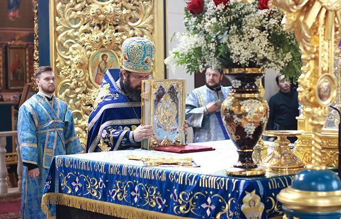 Евангельское зачало праздничной Литургии рассказывало о событиях Благовещения (Евангелие от Луки 1 глава, стихи с 24 по 38) – явлении архангела Гавриила Пресвятой Деве Марии и возвещение Ей тайны Боговоплощения и Рождения от Нее Спасителя мира, Христа.