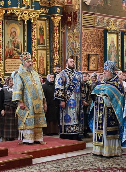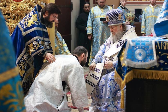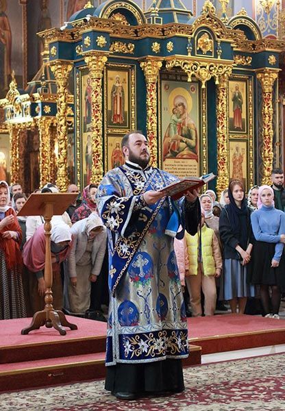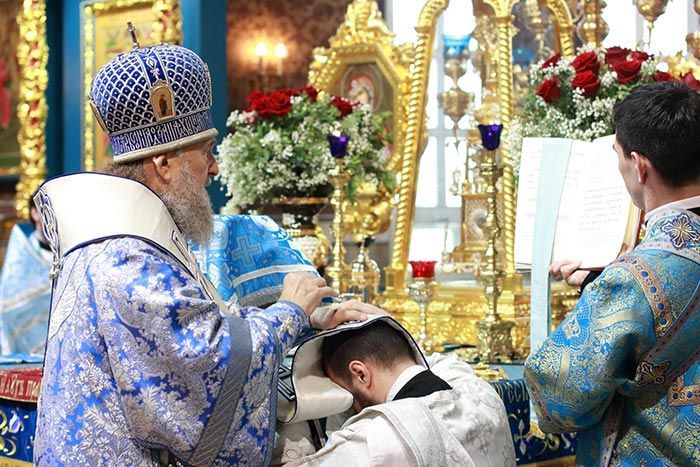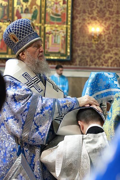 После херувимской песни митрополит Александр совершил священническую хиротонию клирика Успенского кафедрального собора диакона Кирилла Бондаря.