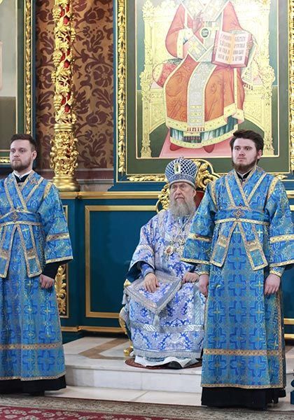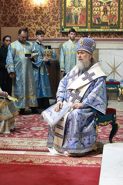 Предстоятелю Православной Церкви Казахстана сослужили: архиепископ Усть-Каменогорский и Семипалатинский Амфилохий, архиепископ Кокшетауский и Акмолинский Серапион; благочинный Астанайского церковного округа архимандрит Сергий (Карамышев), настоятель храма в честь иконы Божией Матери «Всех скорбящих Радость» города Алма-Аты протоиерей Евгений Воробьев, ключарь Успенского кафедрального собора города Астаны протоиерей Димитрий Байдек, клирик храма преподобного Серафима Саровского города Астаны иеромонах Силуан (Синегубов), руководитель личного секретариата Главы Митрополичьего округа иеромонах Прохор (Ендовицкий), руководитель православного молодежного движения Астанайского благочиния иерей Григорий Куликов, иерей Сергий Дианов, иерей Сергий Лубневский, руководитель административного секретариата Главы Митрополичьего округа иерей Георгий Сидоров; протодиакон Николай Гринкевич, руководитель службы протокола митрополита протодиакон Роман Головин, протодиакон Владимир Сыровацкий, диакон Илия Давыдов, диакон Михаил Чумаков, диакон Сергий Слесарчук, диакон Кирилл Бондарь.