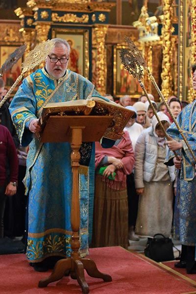 Звучало апостольское чтение из Послания апостола Павла к Евреям (2 глава, стихи с 11 по 18), раскрывающее идею Боговоплощения – Сын Божий стал истинным человеком ради спасения всего человеческого рода.