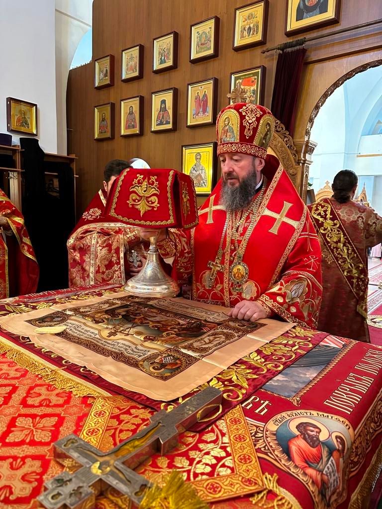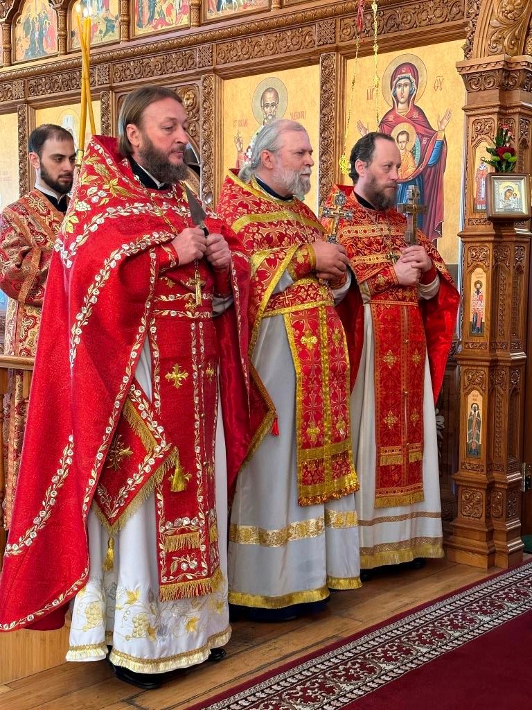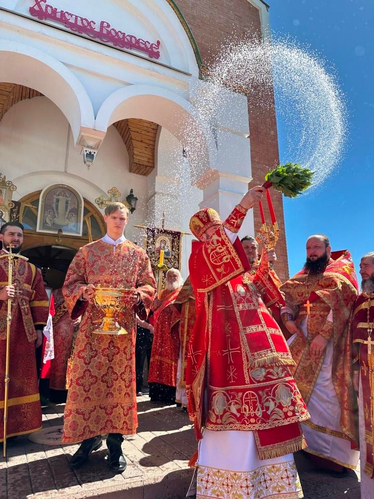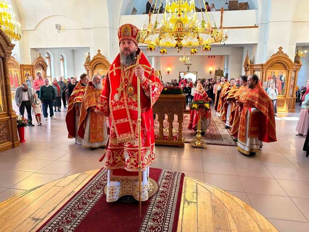 На Божественной Литургии особенным образом поминались «вожди и воины, живот свой на поле брани за веру и отечество положившие и все, в годы военного лихолетья невинно убиенные и умученные». После заамвонной молитвы был совершен пасхальный крестный ход. Соборное богослужение завершилось проповедью архиепископа Амфилохия.
