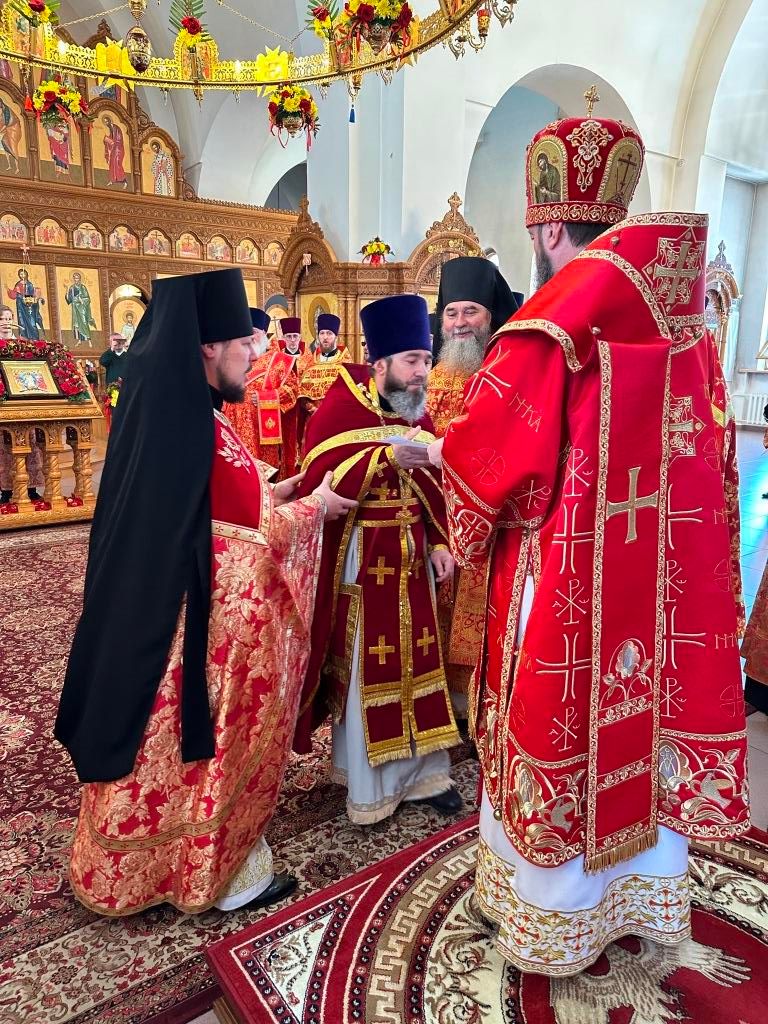 По благословению Святейшего Патриарха Московского и всея Руси Кирилла, на малом входе клирики епархии были удостоены очередных богослужебно-иерархических наград: настоятель Пророко-Илиинского храма города Серебрянска протоиерей Сергий Семченко был награжден правом ношения наперсного креста с украшениями; настоятель Иоанно-Предтеченского храма города Семипалатинска протоиерей Сергий Жарич был награжден правом ношения палицы; иереи Андрей Лебединский и Алексий Горбунов были награждены правом ношения наперсного креста золотого цвета; иерей Владимир Лаврешин был удостоен права ношения набедренника и камилавки.