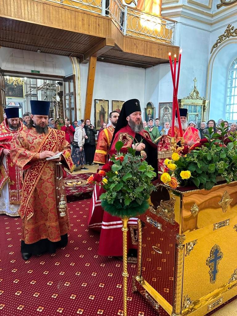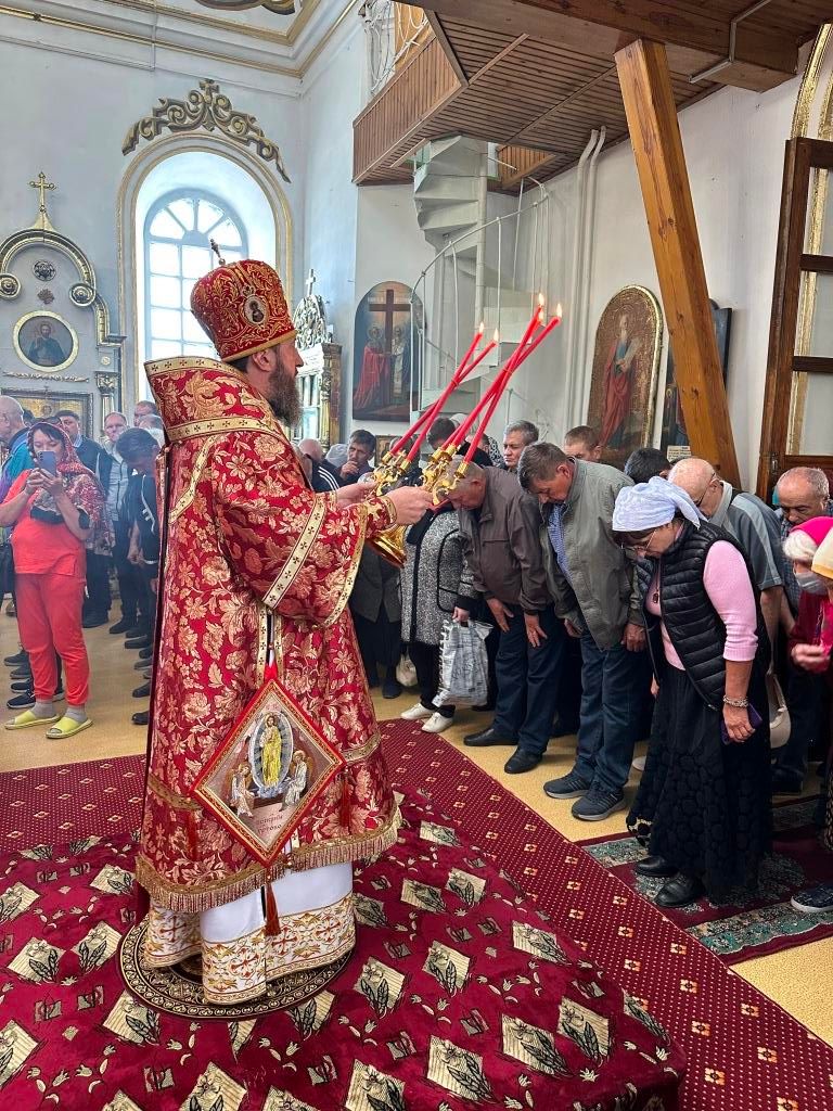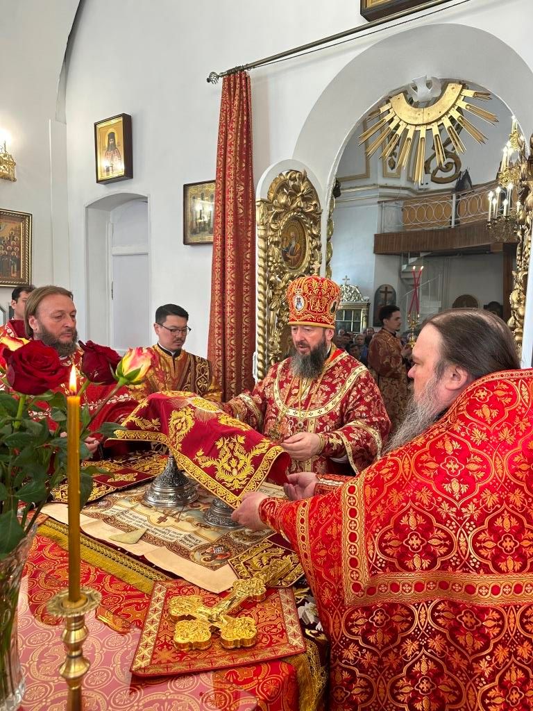 За праздничным богослужением Его Высокопреосвященству сослужили: благочинный Семипалатинского церковного округа протоиерей Евгений Яганов, клирики Воскресенского собора протоиерей Александр Юркин, иерей Евгений Хохряков; секретарь епархии диакон Илия Кван, протодиакон Андрей Дудник и протодиакон Николай Белоконь. Песнопения Божественной Литургии и престольного праздника исполнял хор под управлением Ю. Хохряковой.