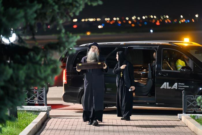 Из международного аэропорта Южной столицы чудотворный образ был доставлен в Софийский собор Иверско-Серафимовского женского монастыря, где его встретил митрополит Астанайский и Казахстанский Александр.