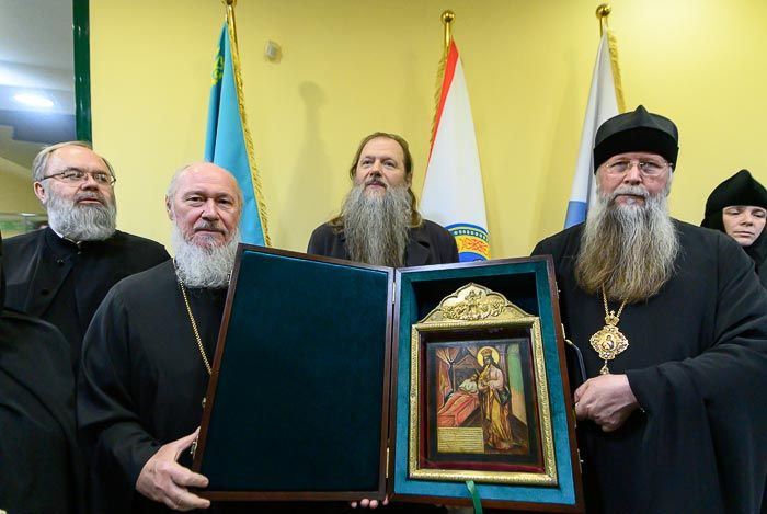 Глава Православной Церкви Казахстана тепло приветствовал гостей и поблагодарил их за личное участие в принесении святыни в пределы Митрополичьего округа.