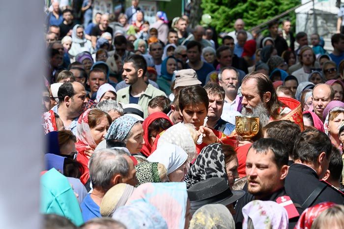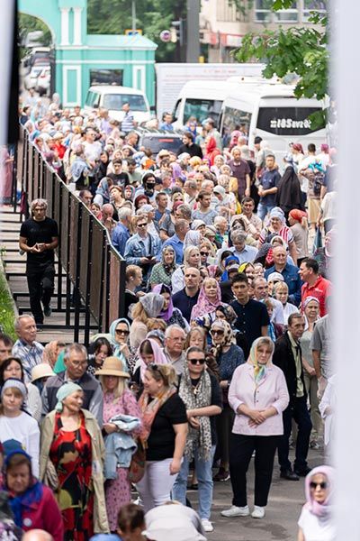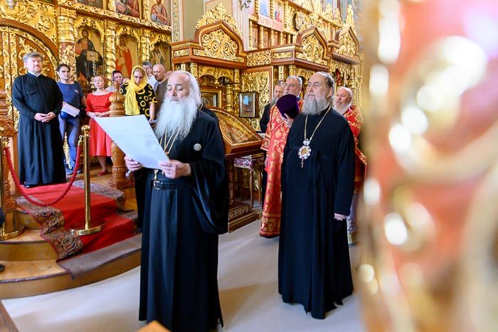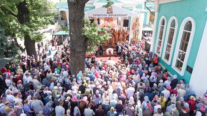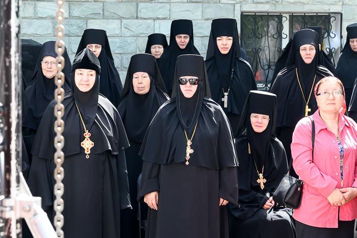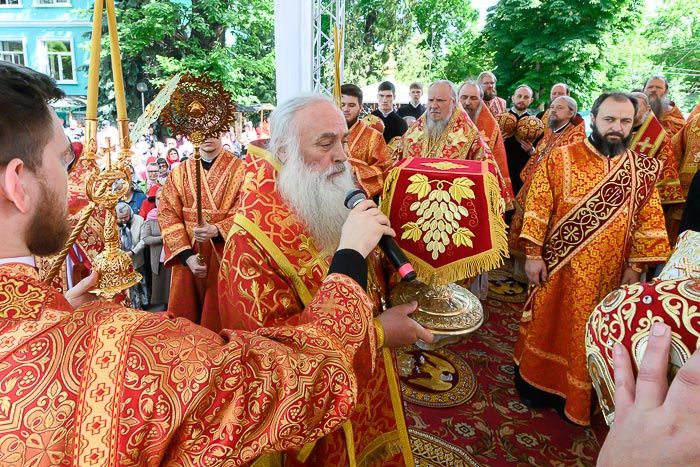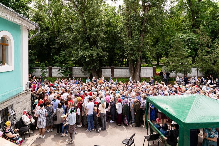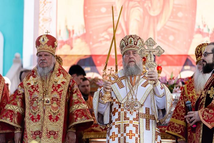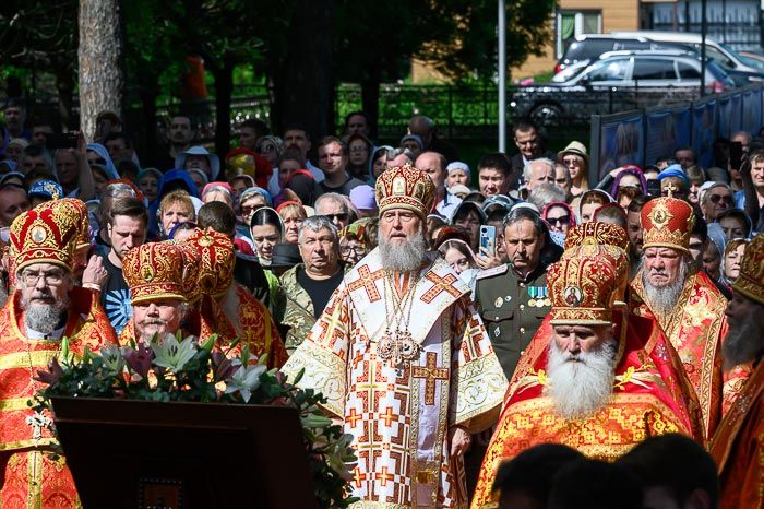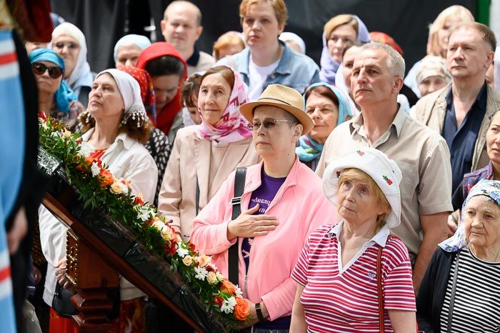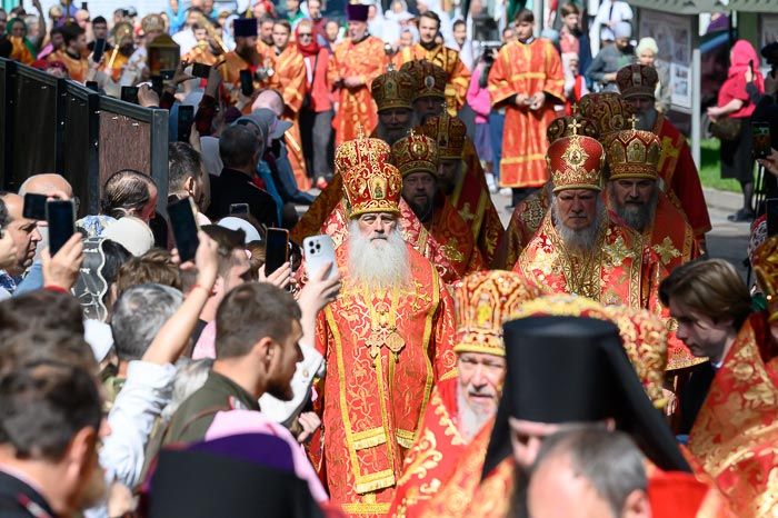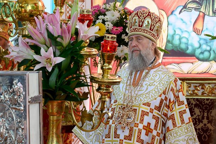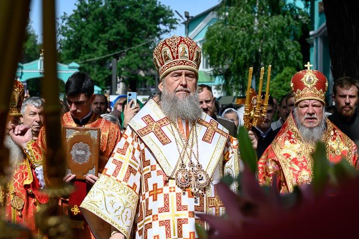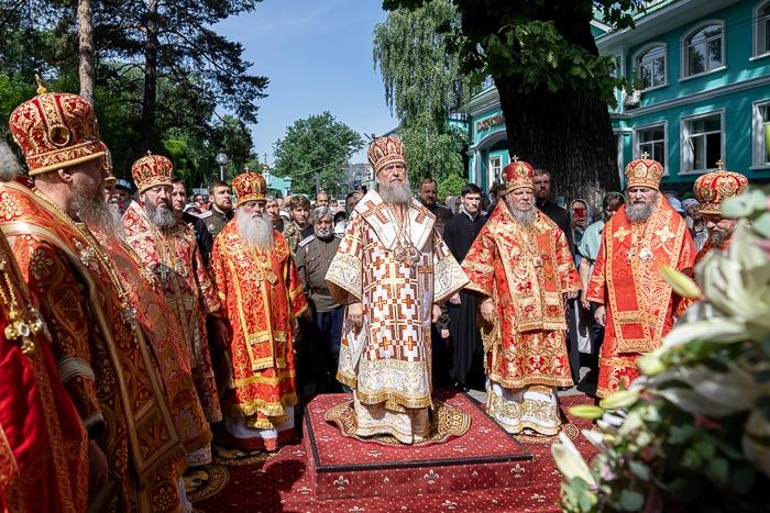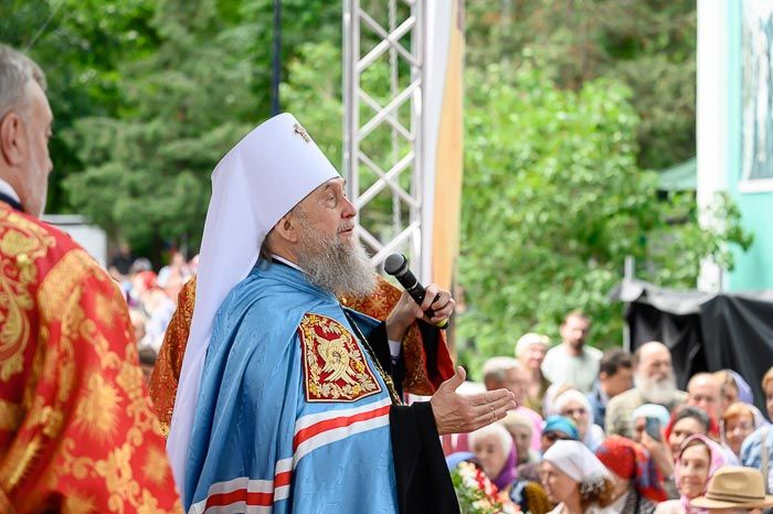 После чтения часов, перед началом Литургии, при пении пасхальных тропарей великая святыня – чудотворная икона Пресвятой Богородицы «Целительница» – была встречена у ворот храма, перенесена крестным ходом к месту совершения богослужения и установлена на престоле.
