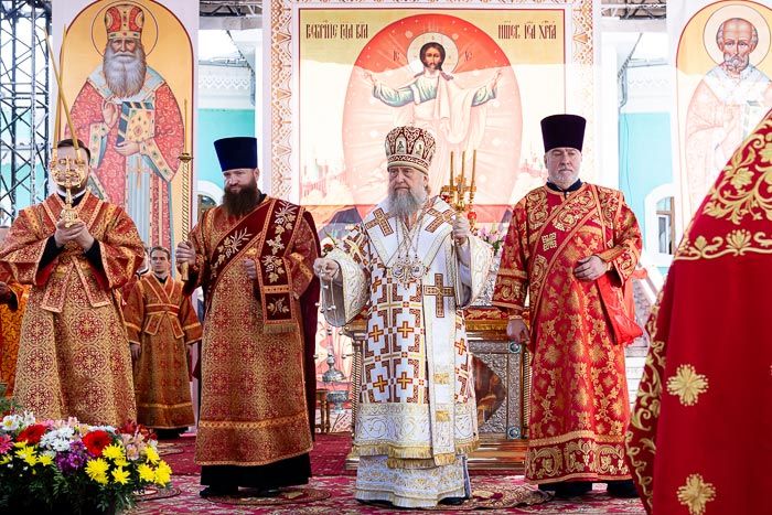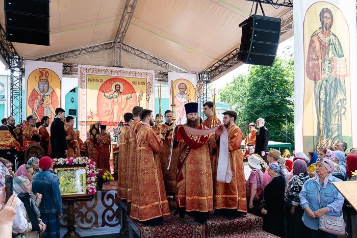 Далее Глава Казахстанского Митрополичьего округа осенил молящихся святыней, после чего сердечно поблагодарил гостей-иерархов, священнослужителей и всех участников торжеств за общую молитву и поздравил собравшихся с сугубыми торжествами, духовно украсившими пасхальные дни, – 25-летием учреждения Астанайской и Алма-Атинской епархии и принесением в Алма-Ату чудотворной иконы Богородицы.