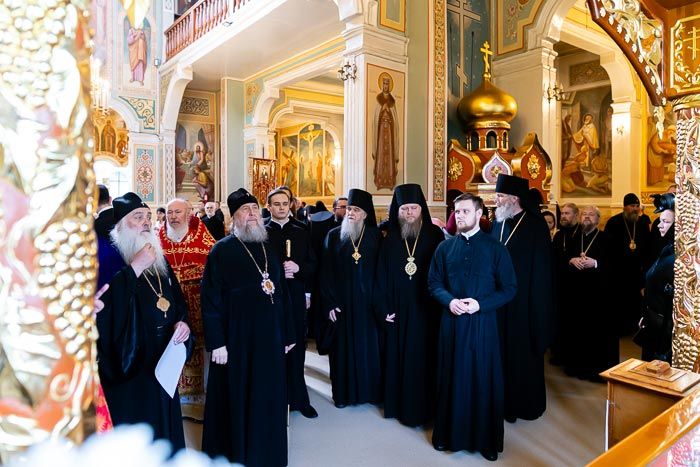 За Литургией молились: настоятельница Алексеевской женского ставропигиального монастыря Москвы, руководитель Правового управления Московской Патриархии игумения Ксения (Чернега); настоятельница Крестовоздвиженского Иерусалимского ставропигиального монастыря игумения Екатерина (Чайникова), настоятельница Иверско-Серафимовского монастыря Алма-Аты игумения Любовь (Якушкина), настоятельница Свято-Троицкого Никольского монастыря города Ташкента игумения Екатерина (Мальгина), настоятельница Покровского женского монастыря игумения Варвара (Морозова), настоятельница Богородице-Рождественского монастыря города Караганды игумения Олимпиада (Салопеко), настоятельница монастыря в честь иконы Божией Матери «Взыскание погибших» города Астаны монахиня Севастиана (Плотникова), настоятельница Петропавловского женского монастыря города Павлодара монахиня Серафима (Болибок) с сестрами казахстанских обителей; президент общественного фонда «Фонд ЭМО» Г.Г. Сосновский, студенты Алма-Атинской православной духовной семинарии, православные алма-атинцы.