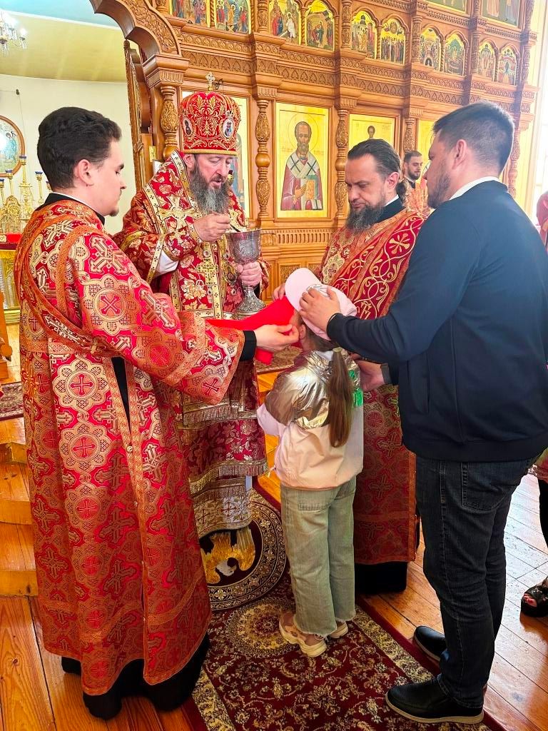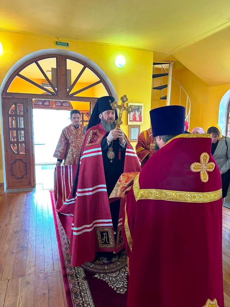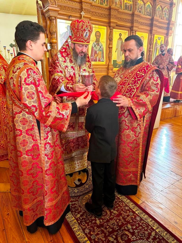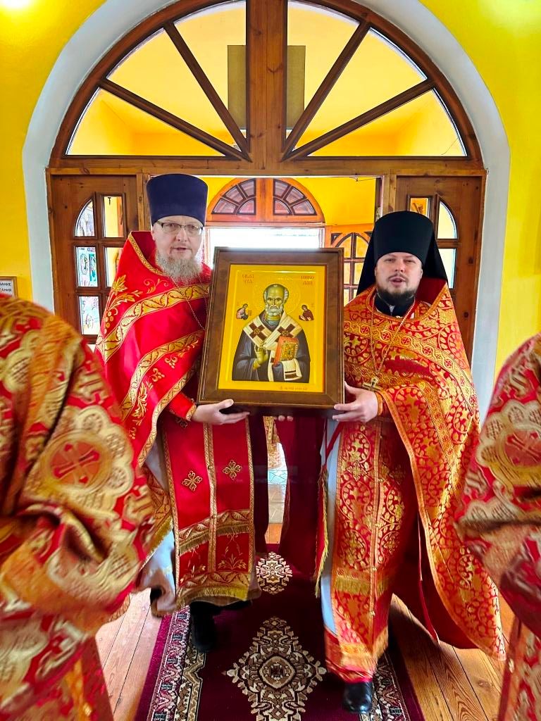 За праздничным богослужением молились прихожане Никольского храма и паломники из окрестных населённых пунктов. На запричастном стихе проповедовал иеромонах Силуан (Магилев). После заамвонной молитвы Архипастырь с духовенством и прихожанами совершил славление святителю Николаю перед праздничной иконой.