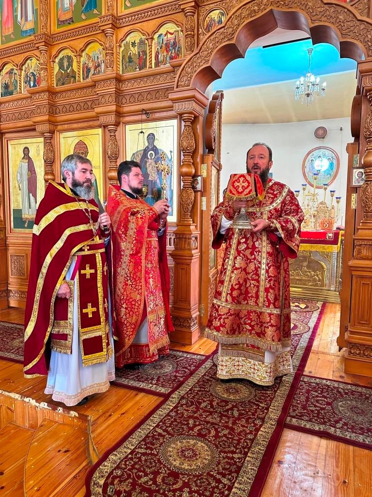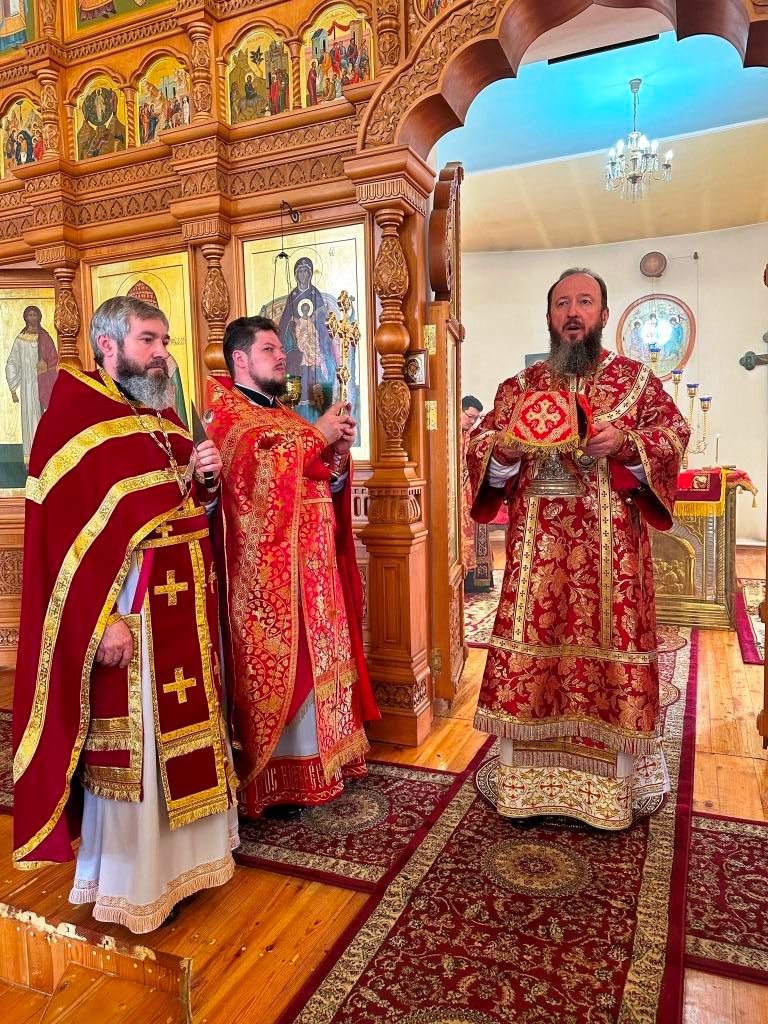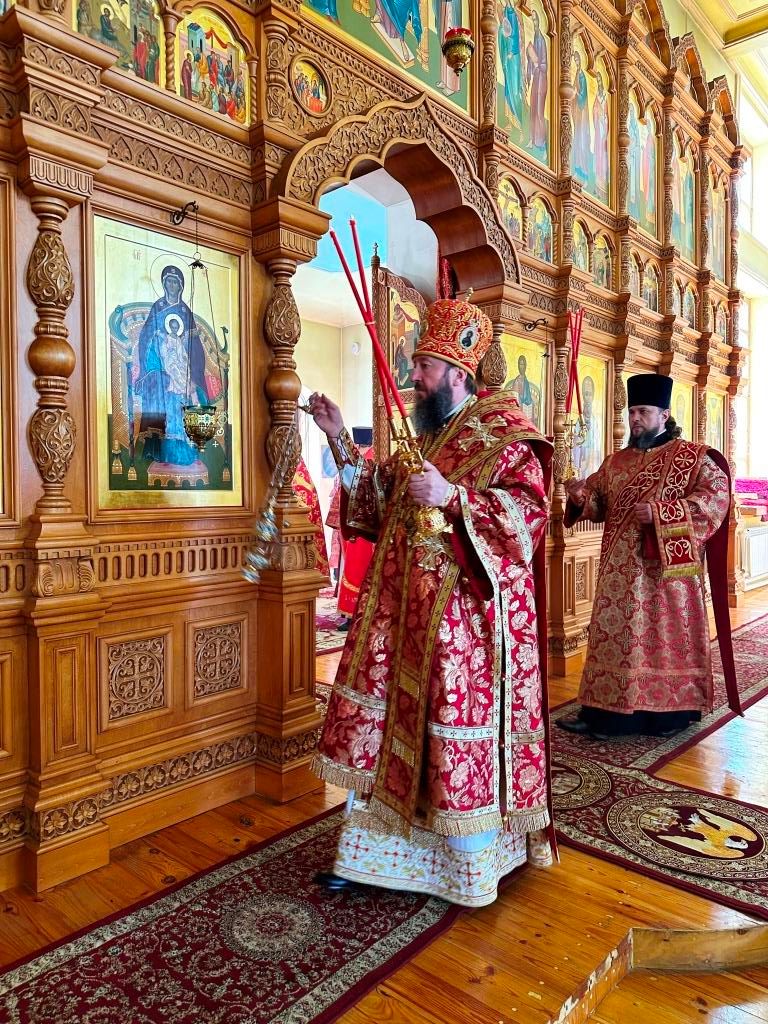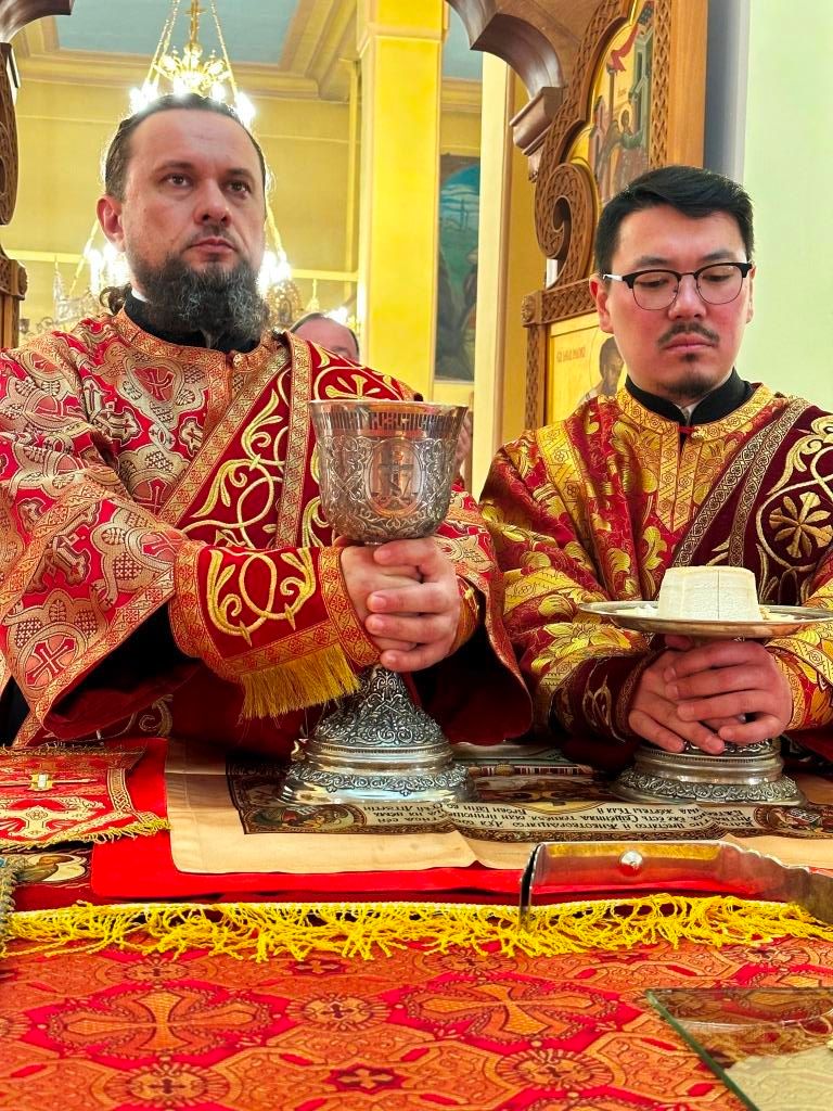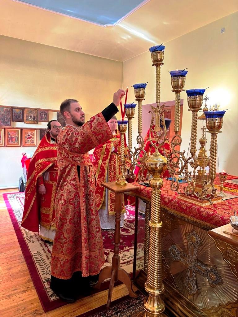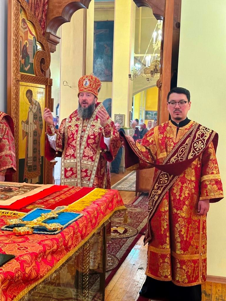 За праздничным богослужением Владыке Амфилохию сослужили: благочинный Усть-Каменогорского церковного округа иеромонах Силуан (Магилев), настоятель Никольского храма города Риддер протоиерей Игорь Копылов, настоятель храма в честь иконы Пресвятой Богородицы «Нечаянная радость» города Риддер иерей Андрей Лебединский, клирик Никольского храма иерей Димитрий Нектеров, клирик Тобольской митрополии иерей Иоанн Казанцев, секретарь епархии диакон Илия Кван, протодиакон Андрей Дудник. Песнопения праздника и Божественной Литургии исполнял приходской хор под управлением регента Н. Новиченко