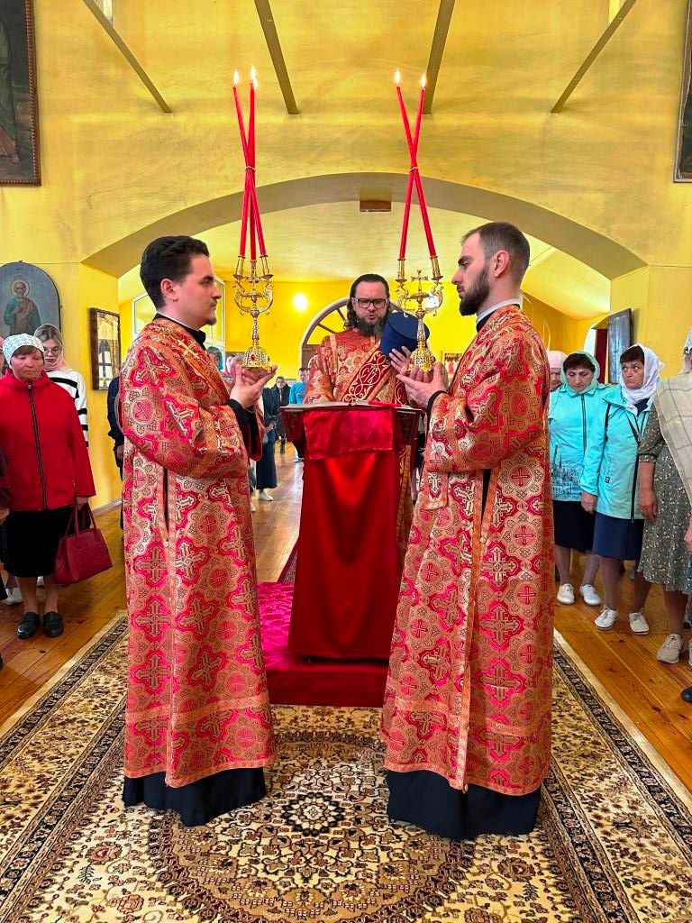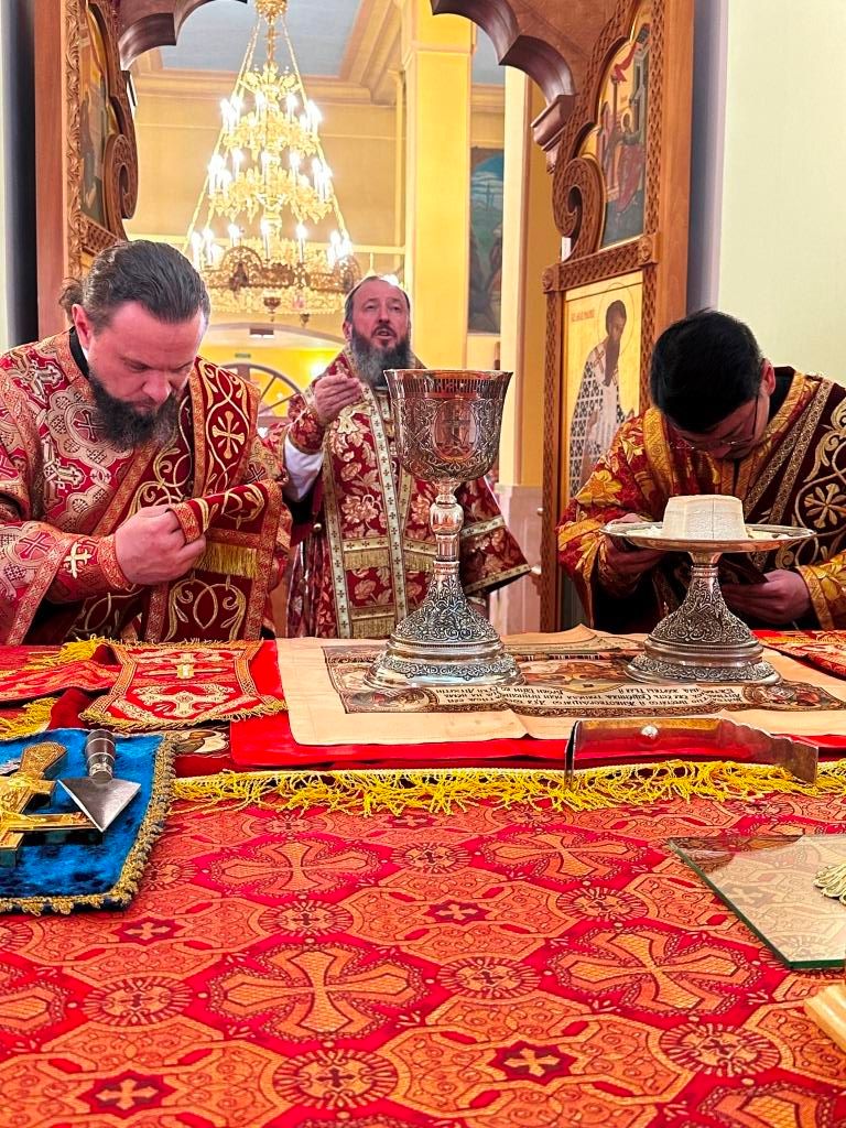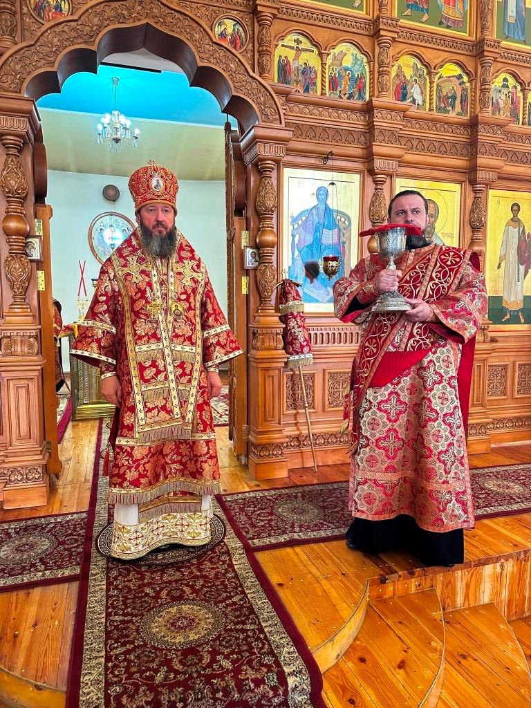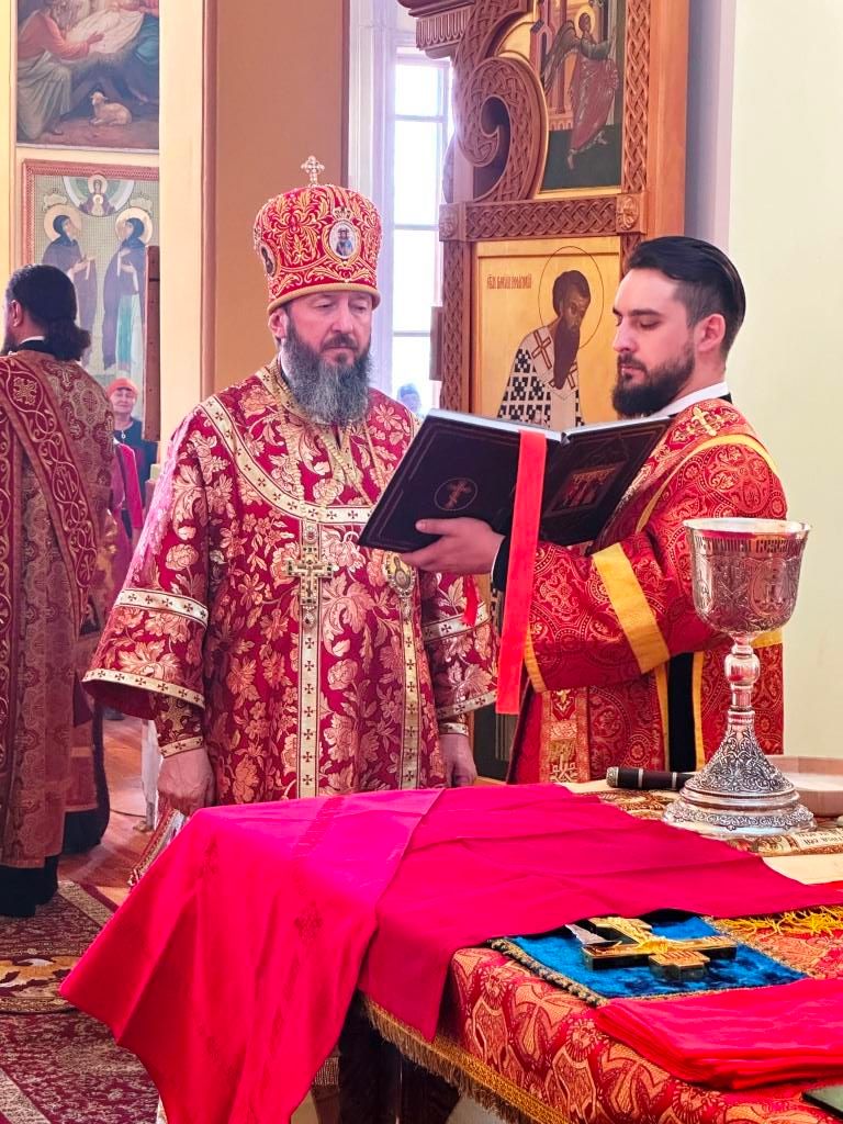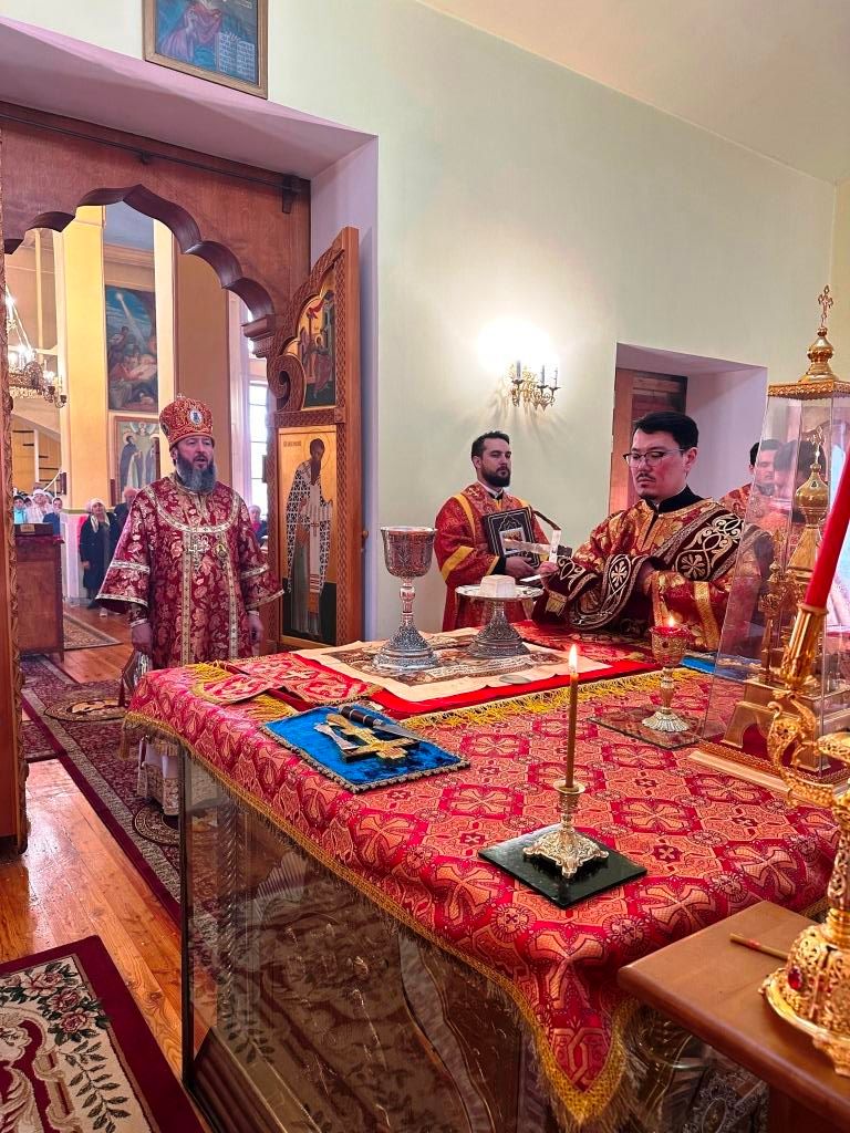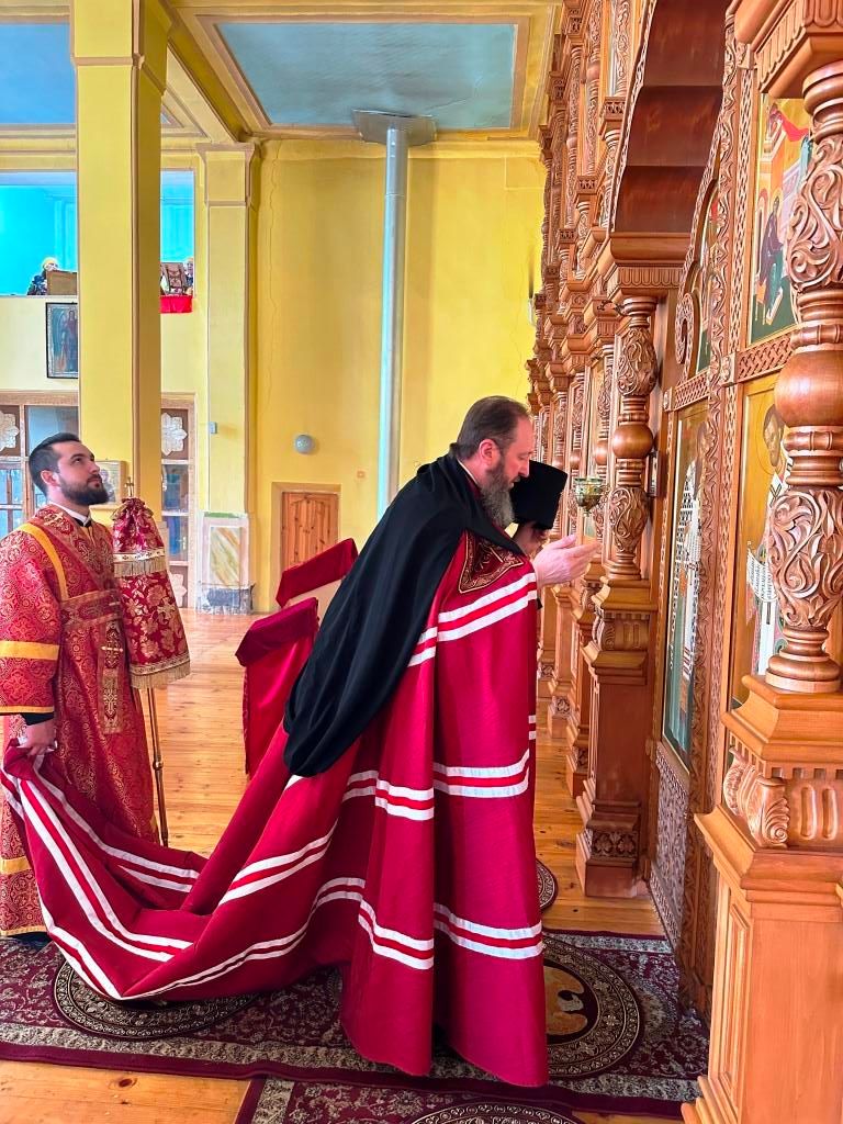 За праздничным богослужением Владыке Амфилохию сослужили: благочинный Усть-Каменогорского церковного округа иеромонах Силуан (Магилев), настоятель Никольского храма города Риддер протоиерей Игорь Копылов, настоятель храма в честь иконы Пресвятой Богородицы «Нечаянная радость» города Риддер иерей Андрей Лебединский, клирик Никольского храма иерей Димитрий Нектеров, клирик Тобольской митрополии иерей Иоанн Казанцев, секретарь епархии диакон Илия Кван, протодиакон Андрей Дудник. Песнопения праздника и Божественной Литургии исполнял приходской хор под управлением регента Н. Новиченко