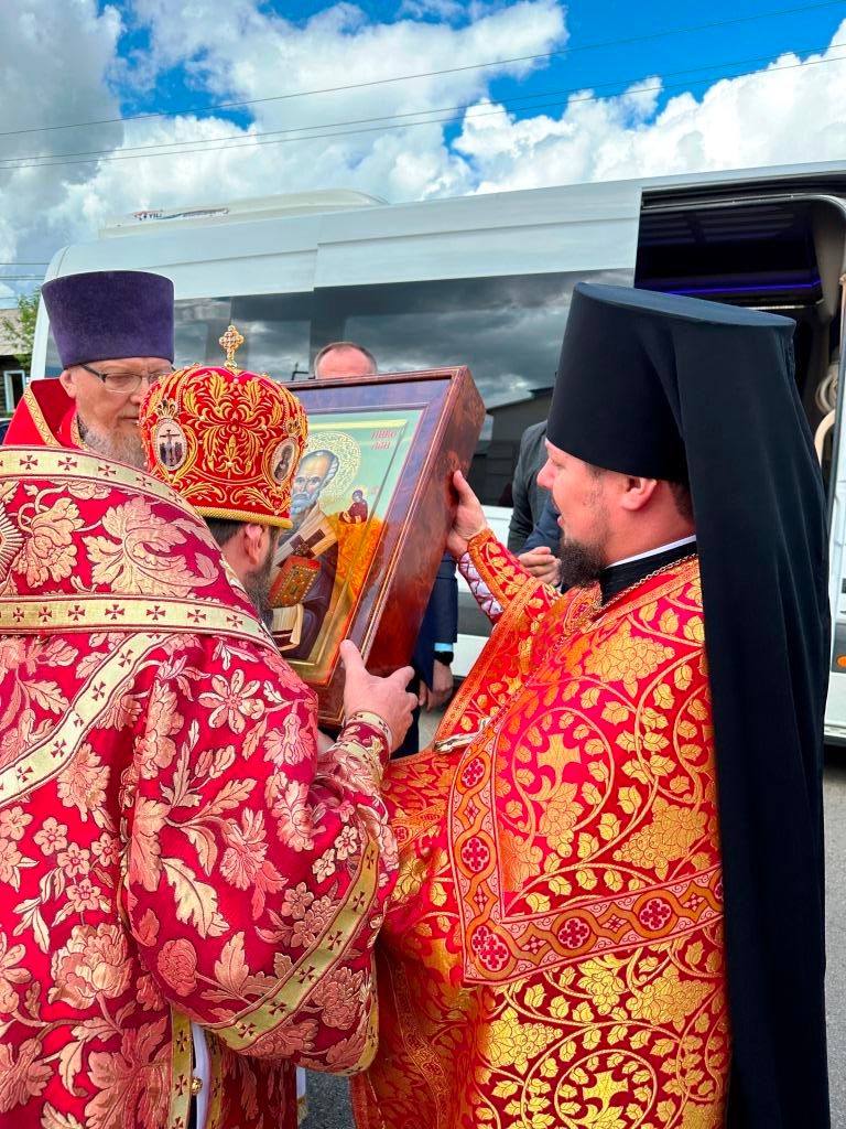 Перед богослужением состоялась встреча иконы святителя Николая «Скоропослушник», которая была написана в афонском монастыре «Ватопед» специально для Никольского храма. Трудами президента Российского благотворительного фонда «Энергия Жизни» Александра Васильевича Холдина святой образ был доставлен в город Риддер.