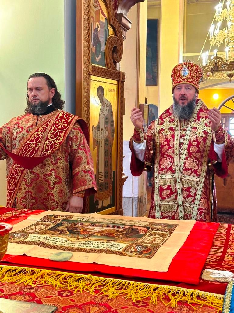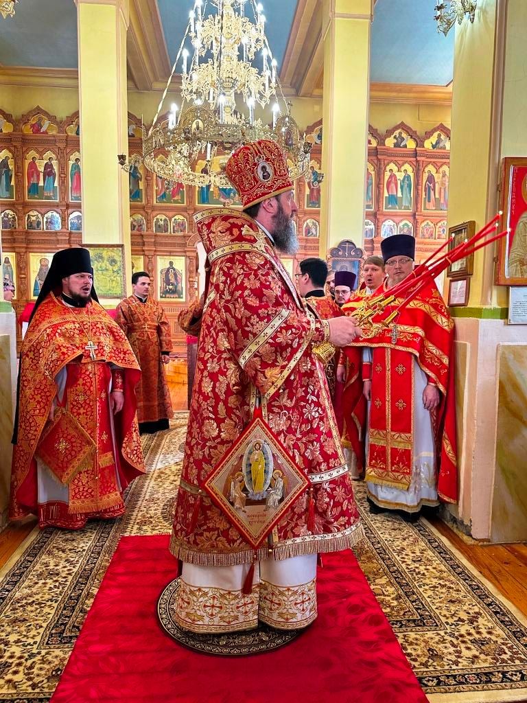 После завершения праздничного богослужения Высокопреосвященнейший архиепископ Амфилохий поздравил настоятеля, духовенство и прихожан с престольным торжеством и произнес слова Архипастырского наставления.
