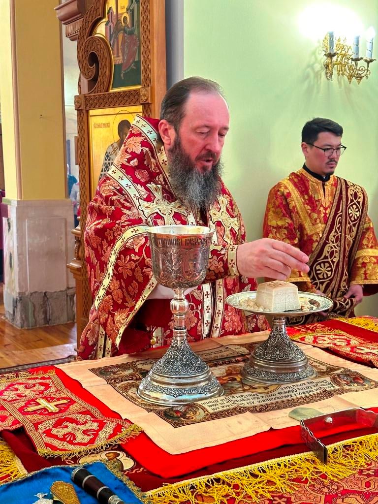 Затем была совершена заупокойная лития, на которой сугубо поминались почившие священнослужители, прихожане и благодетели Никольского храма. Архипастырь вознес молитву о упокоении приснопоминаемого диакона Николая Винокура (+2016), почившего клирика Никольского храма города Риддер.