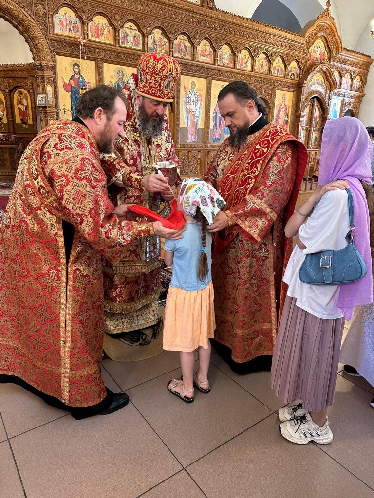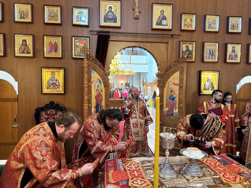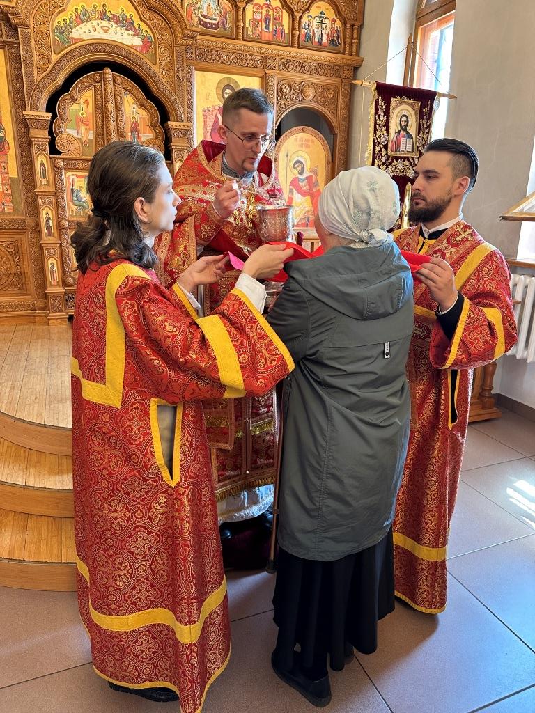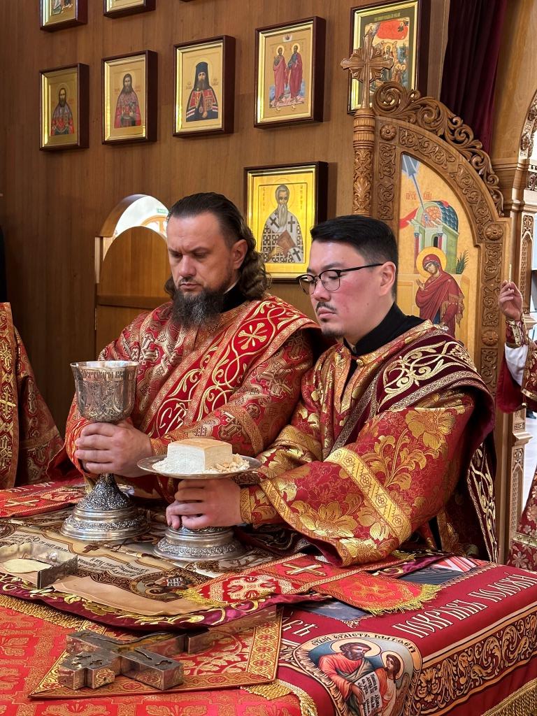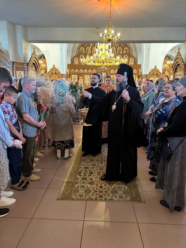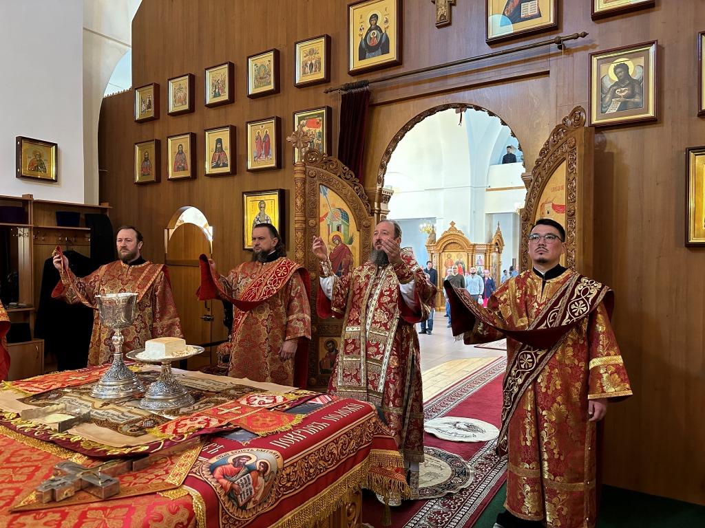 За богослужением молились и причащались Святых Христовых Таин прихожане главного храма Восточного Казахстана, насельники Свято-Троицкого мужского монастыря города Усть-Каменогорска, сотрудники епархиального управления, преподаватели и воспитанники Центральной воскресной школы. Перед причастием мирян проповедовал священник Константин Дьяков.