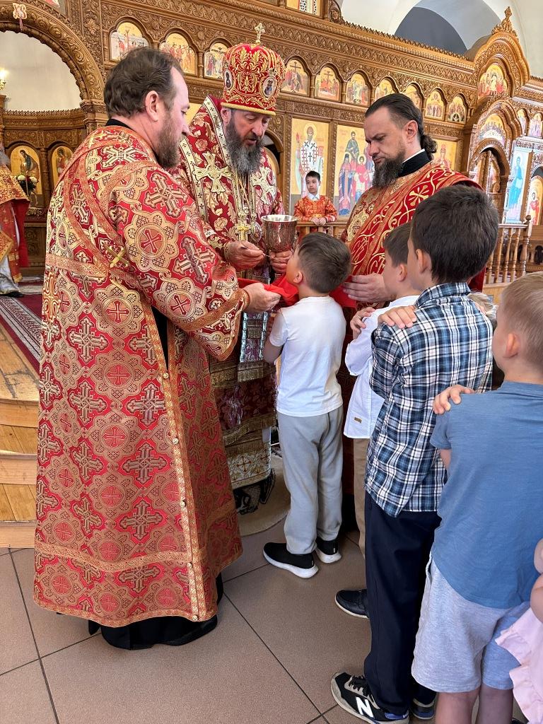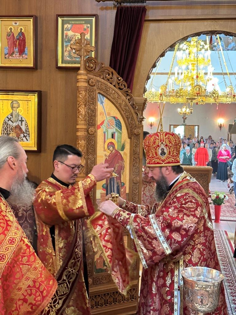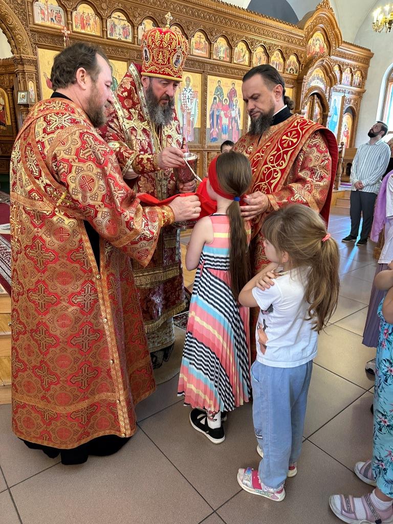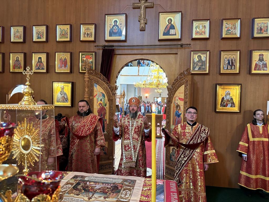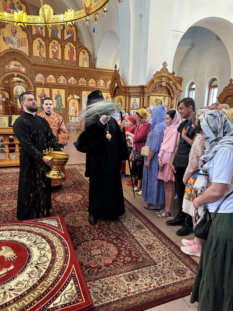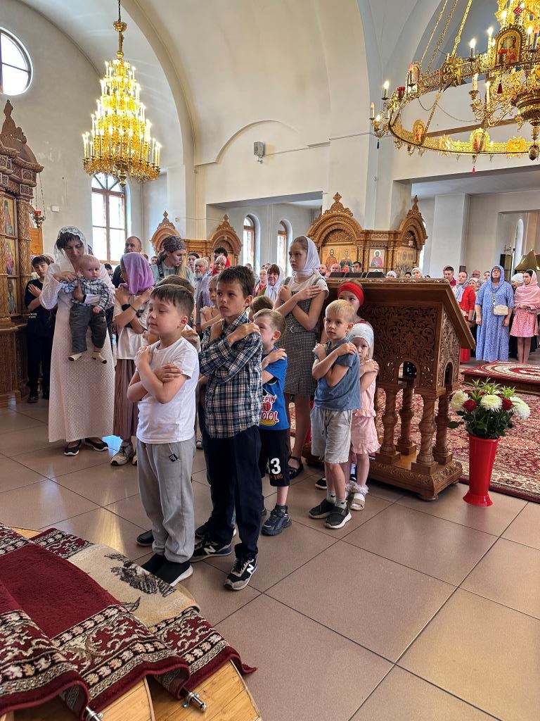 За богослужением молились и причащались Святых Христовых Таин прихожане главного храма Восточного Казахстана, насельники Свято-Троицкого мужского монастыря города Усть-Каменогорска, сотрудники епархиального управления, преподаватели и воспитанники Центральной воскресной школы. Перед причастием мирян проповедовал священник Константин Дьяков.