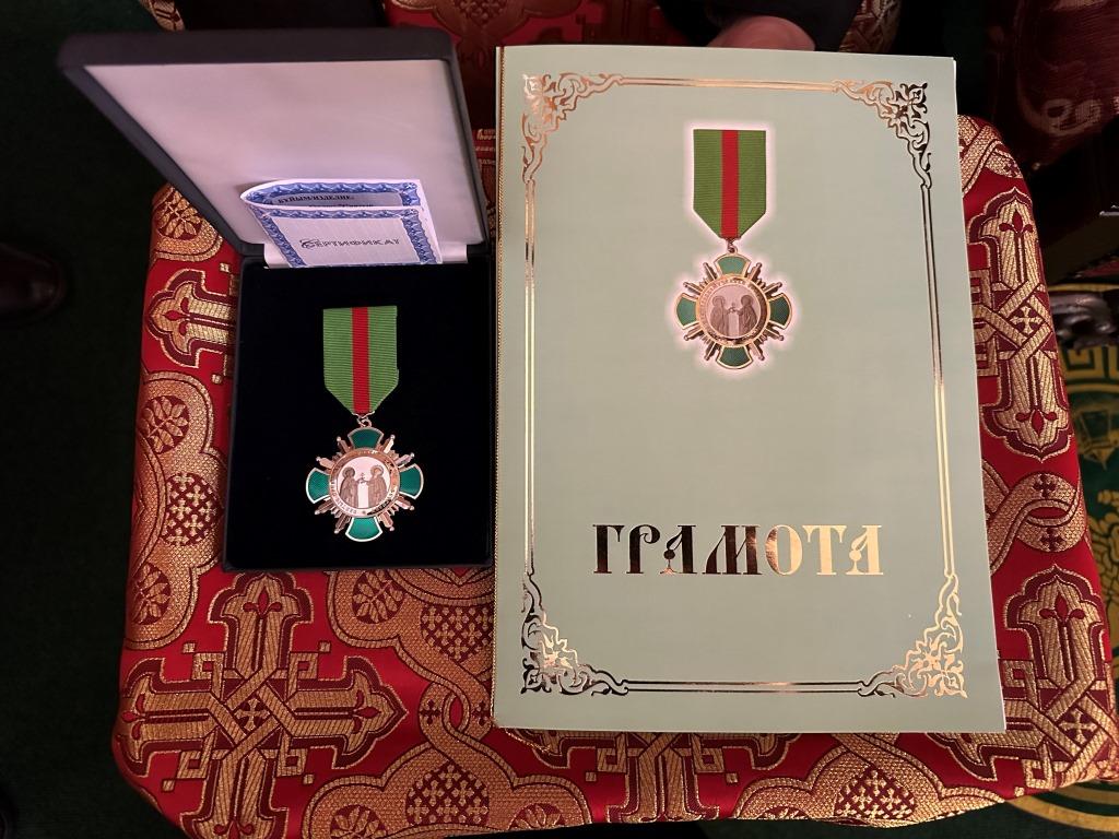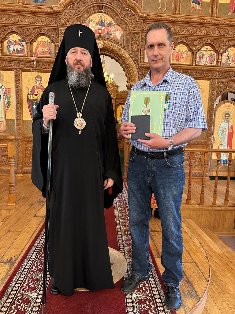 Затем Владыка Амфилохий во внимание к усердным трудам на благо Православной Церкви и в связи с 55-летием со дня рождения наградил эконома епархии А. Селькова орденом преподобномученников Серафима и Феогноста.