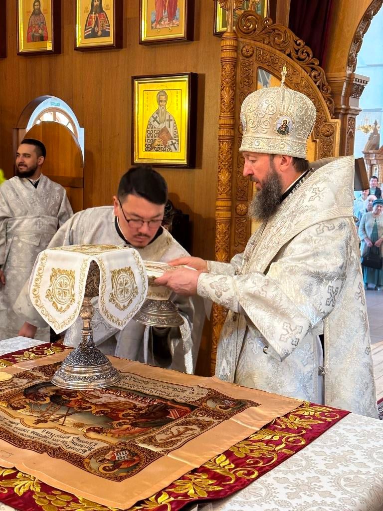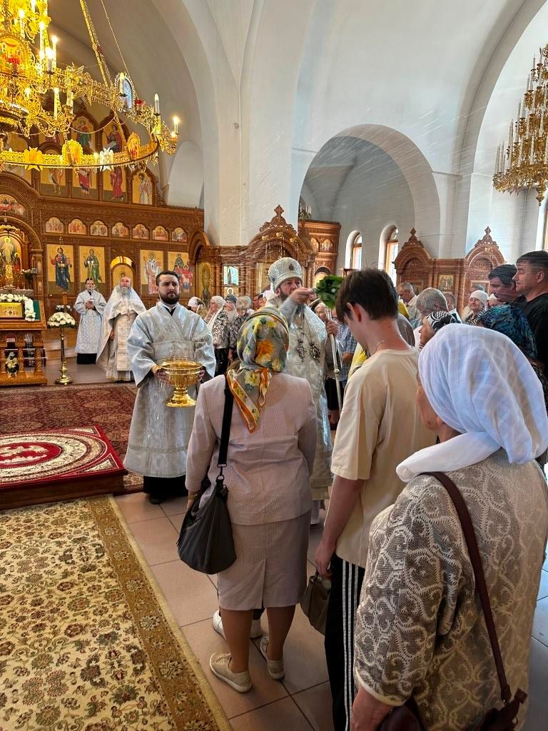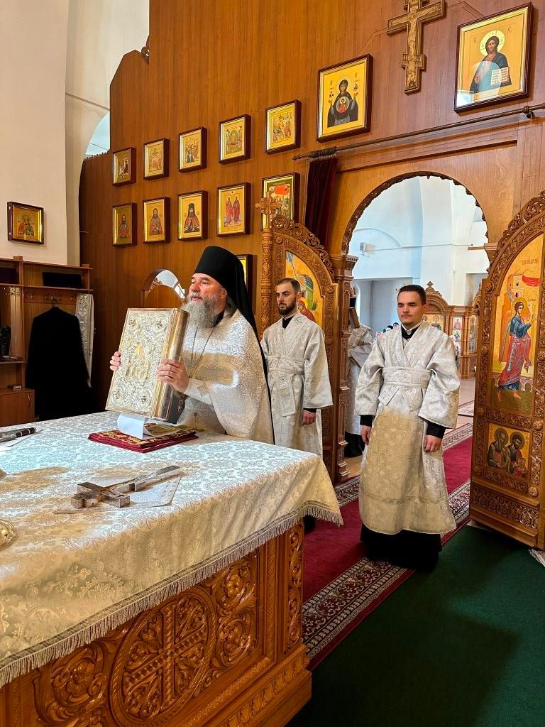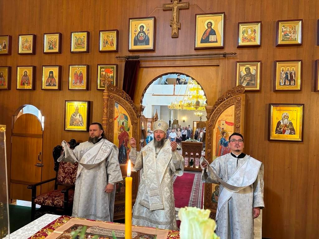 На Божественной Литургии молились насельники Свято-Троицкого мужского монастыря города Усть-Каменогорска, сотрудники епархиального управления и прихожане Андреевского кафедрального собора. Проповедь перед причастием мирян произнёс священник Константин Дьяков.