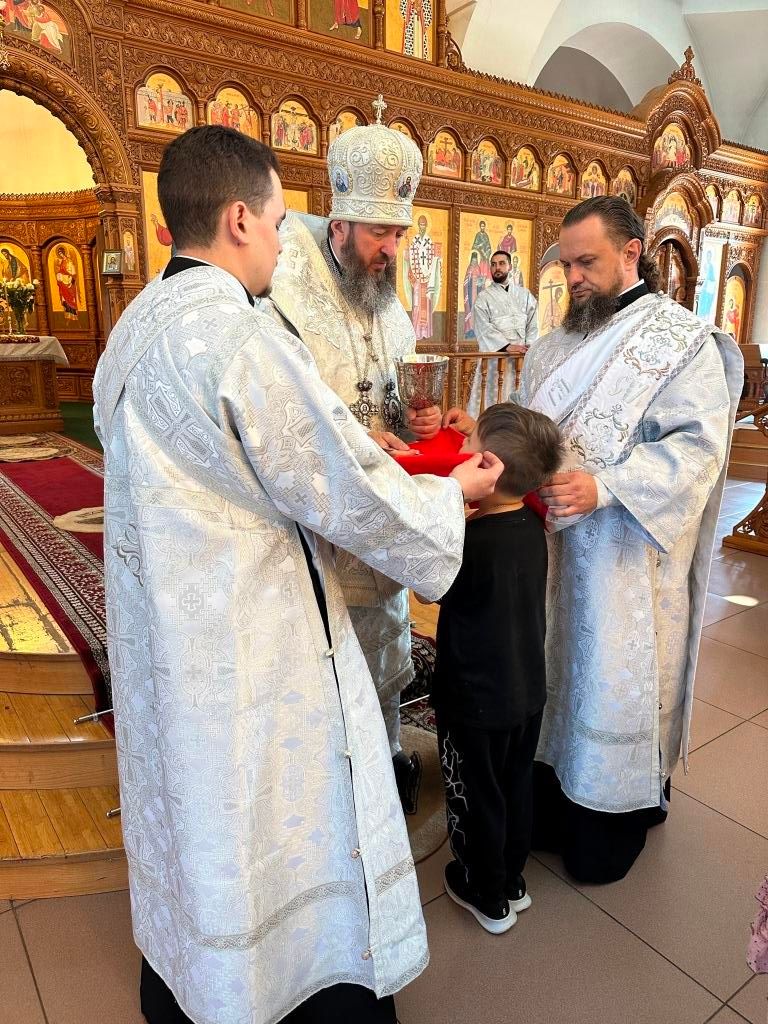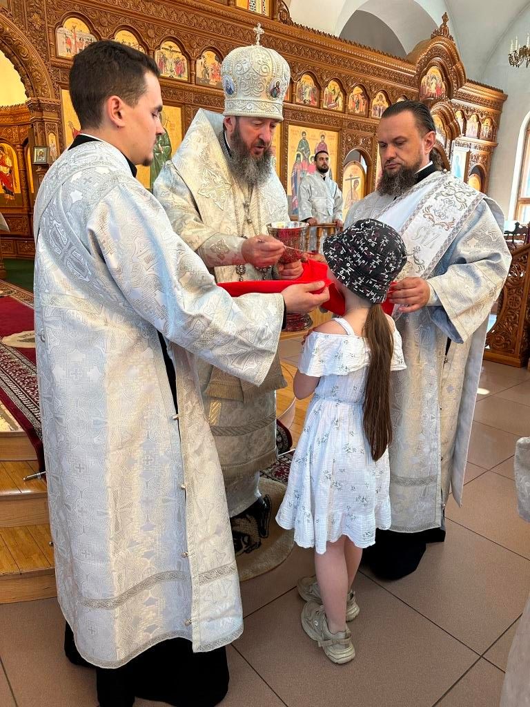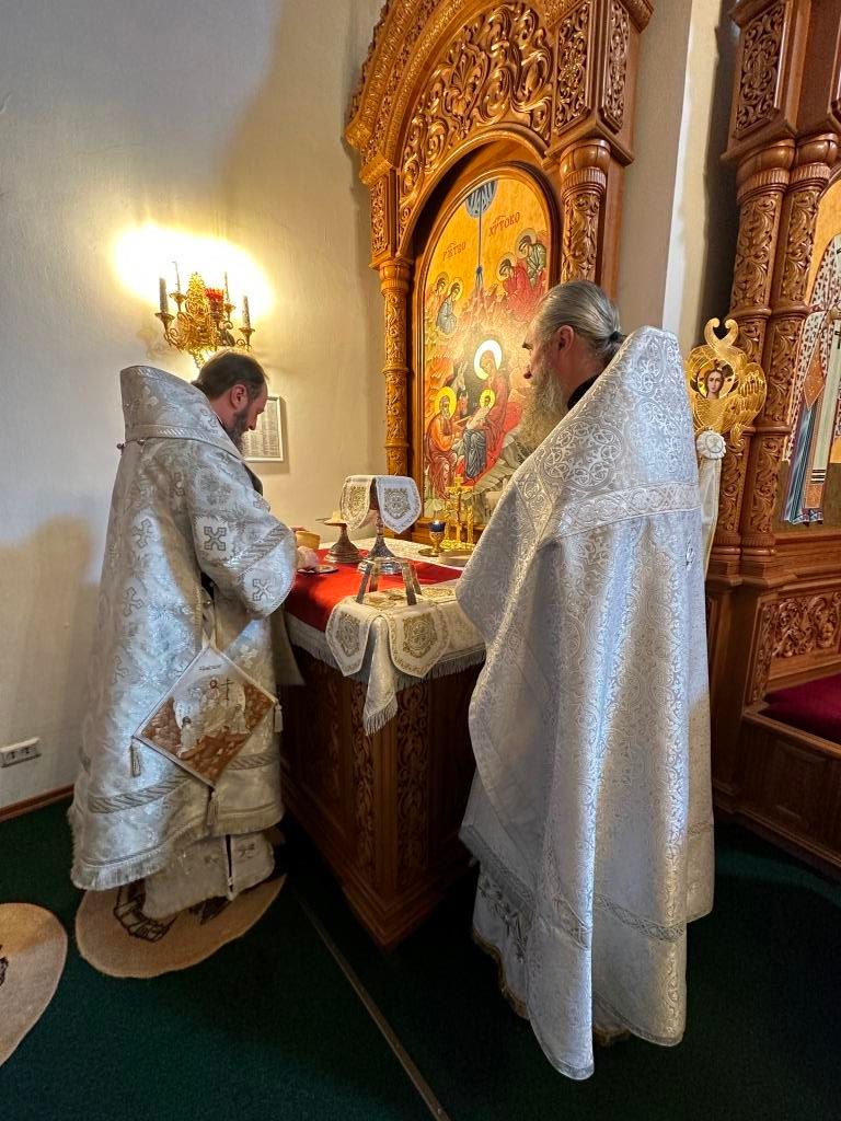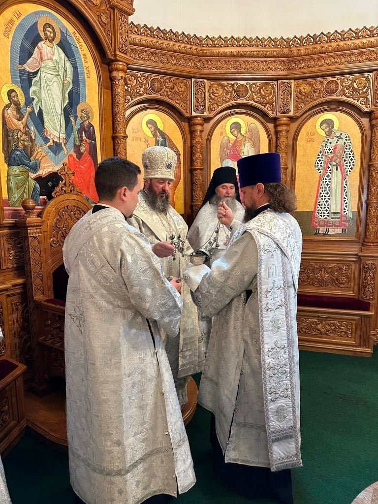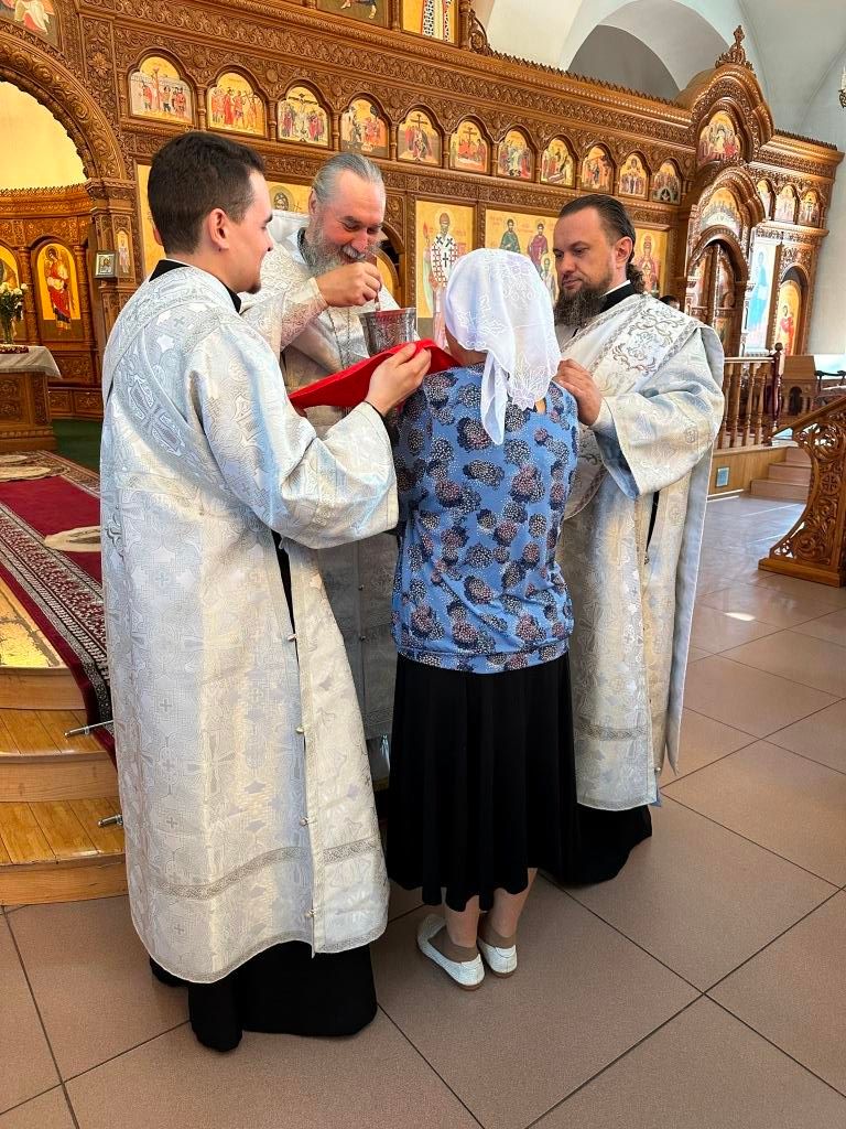 На Божественной Литургии молились насельники Свято-Троицкого мужского монастыря города Усть-Каменогорска, сотрудники епархиального управления и прихожане Андреевского кафедрального собора. Проповедь перед причастием мирян произнёс священник Константин Дьяков.