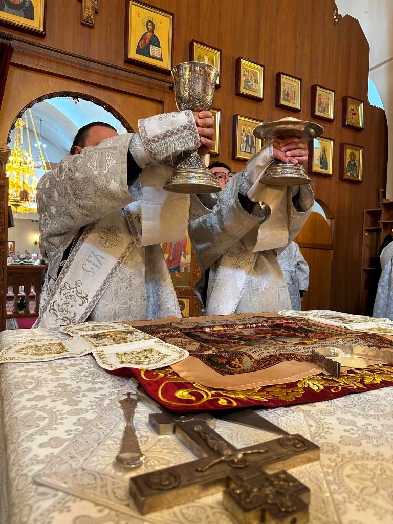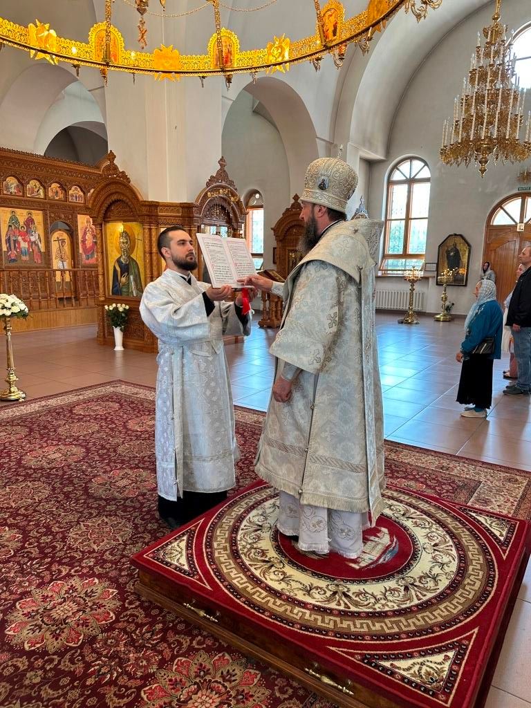 Затем Владыка Амфилохий поздравил клир и паству с великим праздником Вознесения Господня и молитвенно пожелал всем радости о Господе, мира и спасения души.