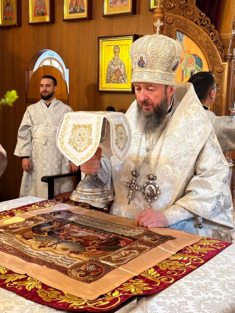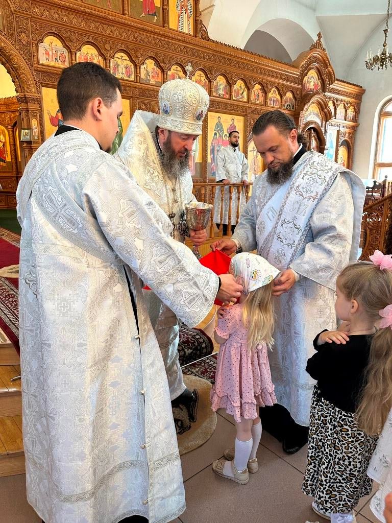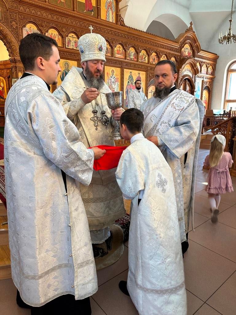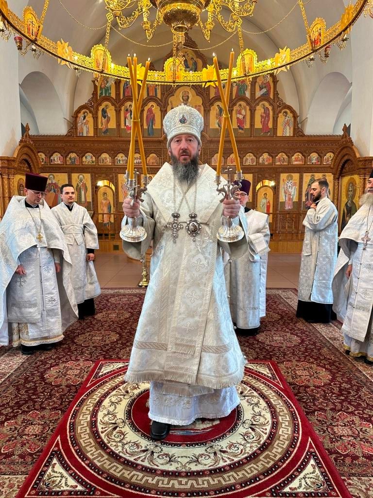 После заамвонной молитвы было совершено славление Господу Иисусу Христу перед праздничной иконой. В завершение Божественной Литургии архиепископ Амфилохий призвал Божие благословение на всех собравшихся и обратился к пастве со словом святительского наставления.