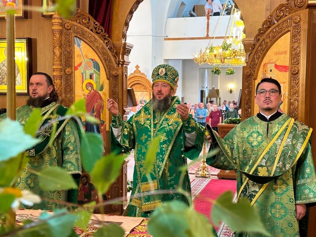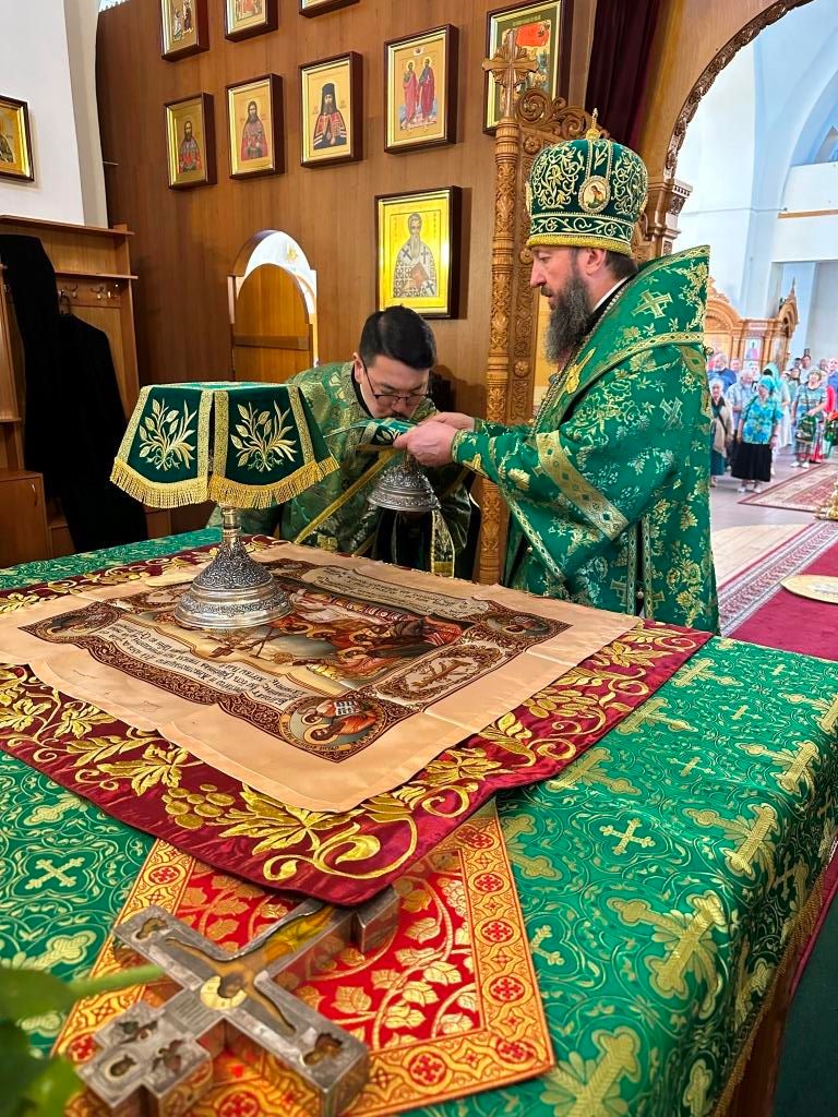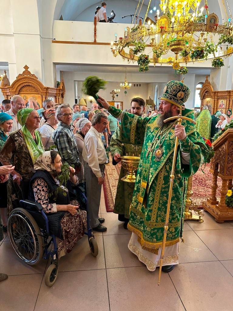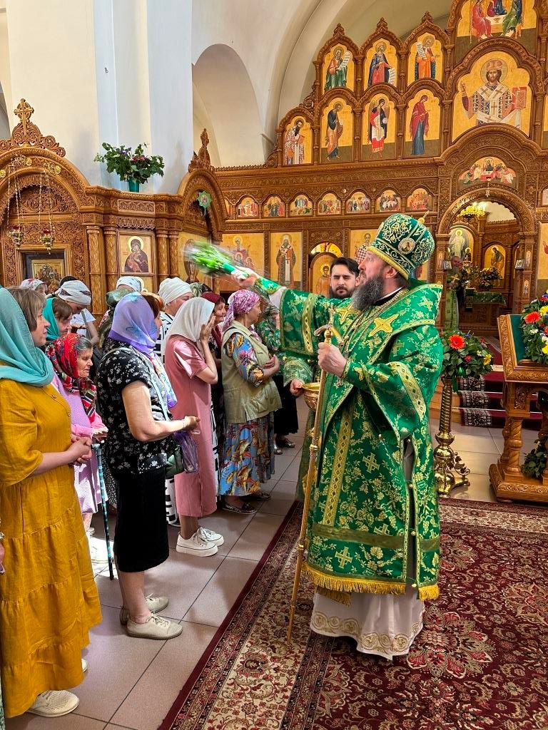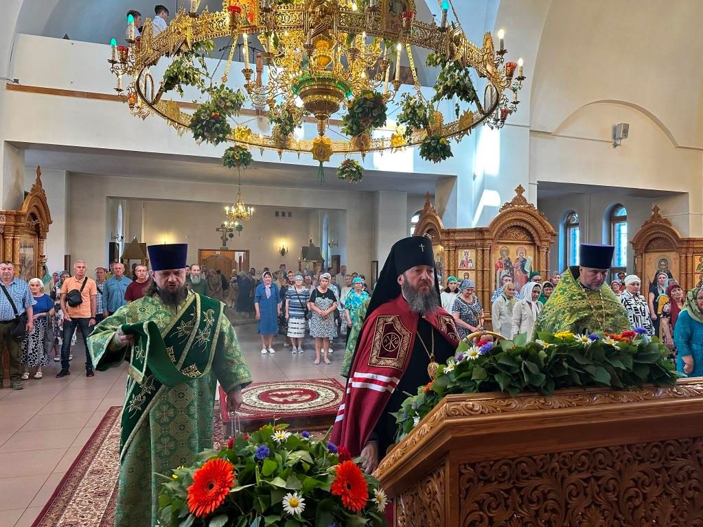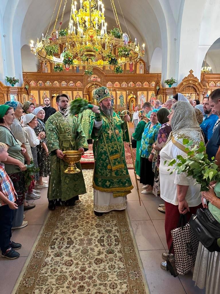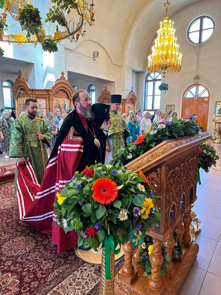 Песнопения праздника Пятидесятницы и Божественной Литургии исполнял хор кафедрального собора под управлением регента Н. Романцовой. За богослужением молились прихожане кафедрального собора и насельники Свято-Троицкого монастыря, сотрудники епархиального управления. Перед началом Божественной Литургии в Свято-Троицком храме был совершен праздничный молебен с чином освящения вводы.