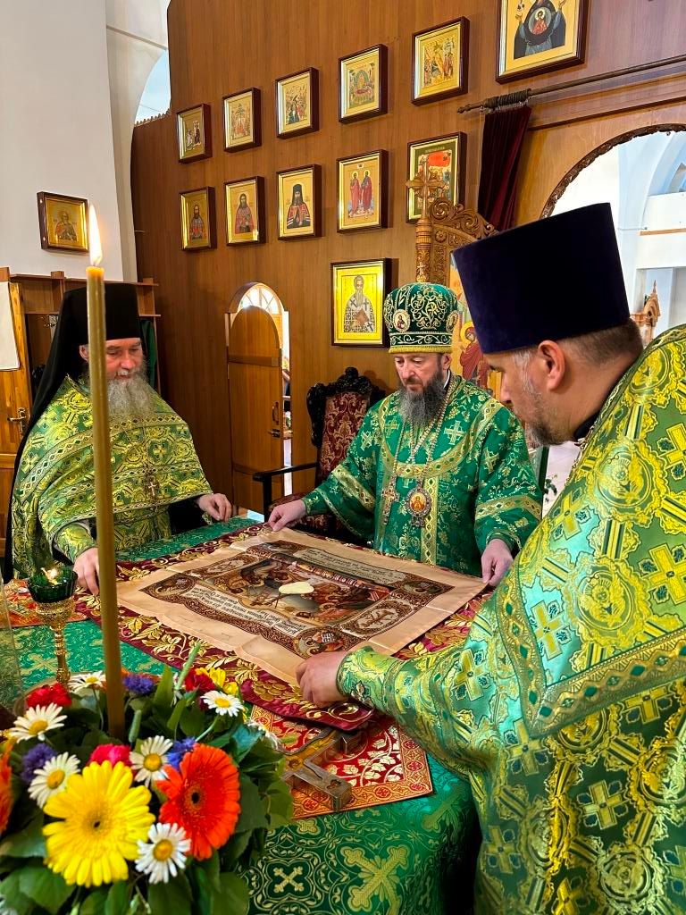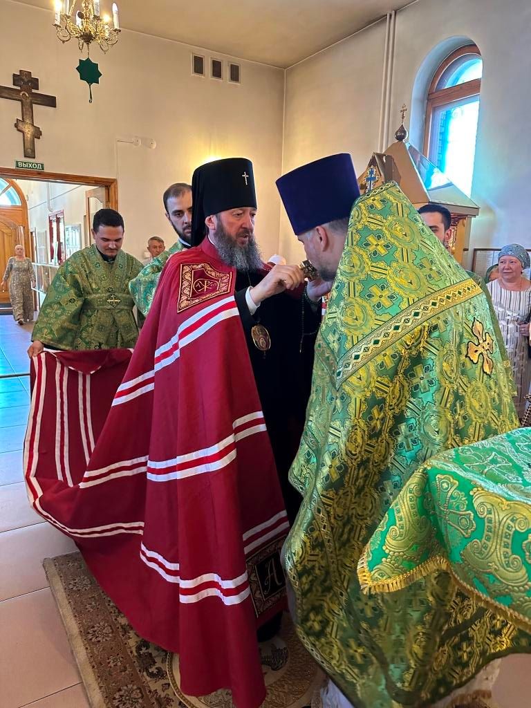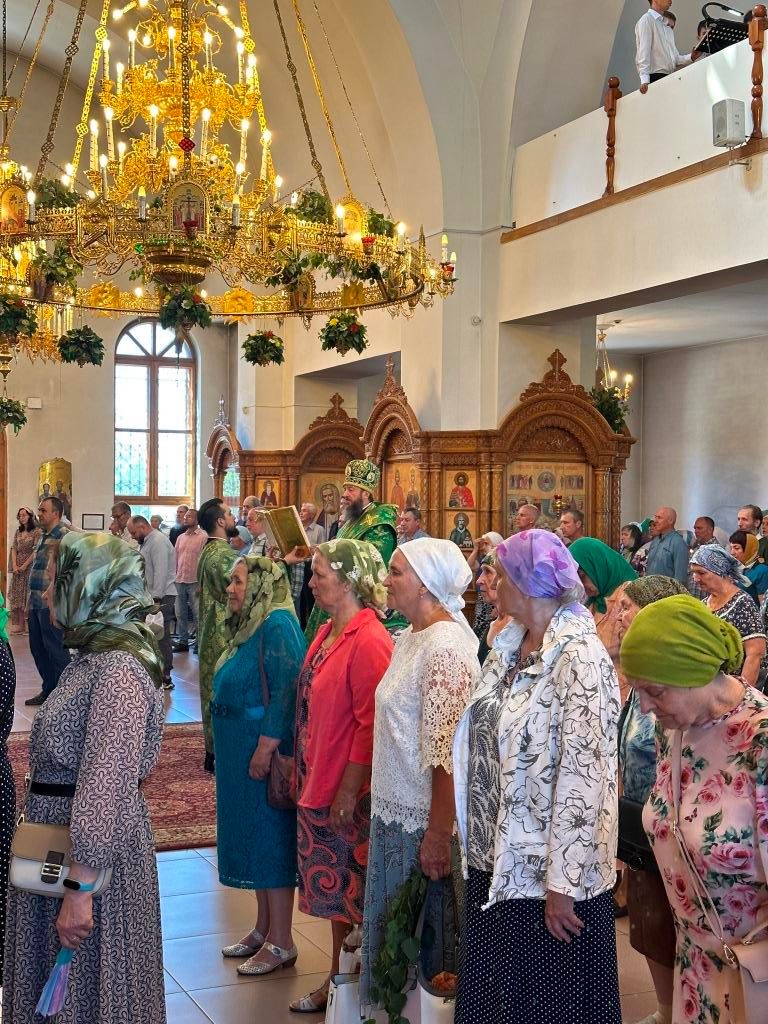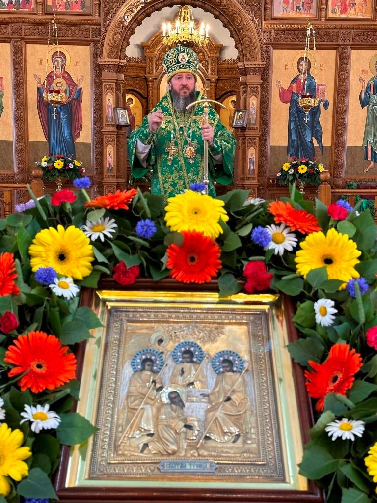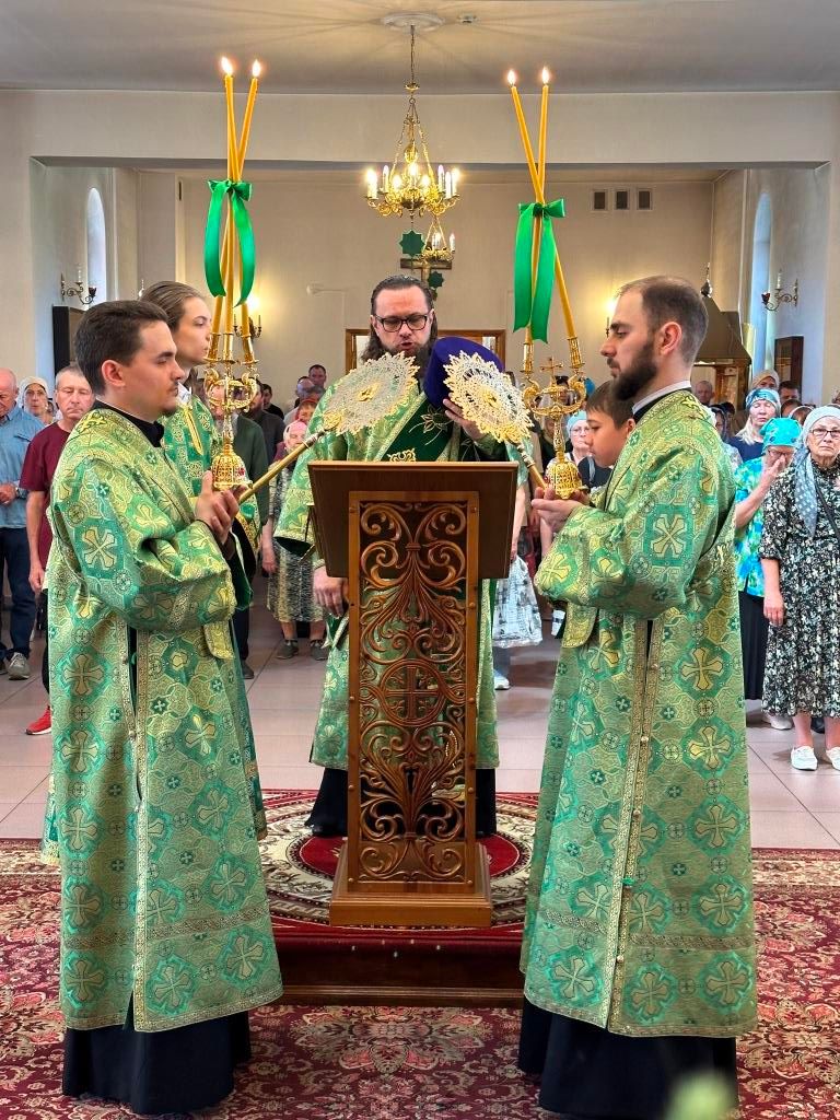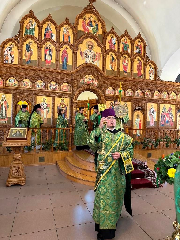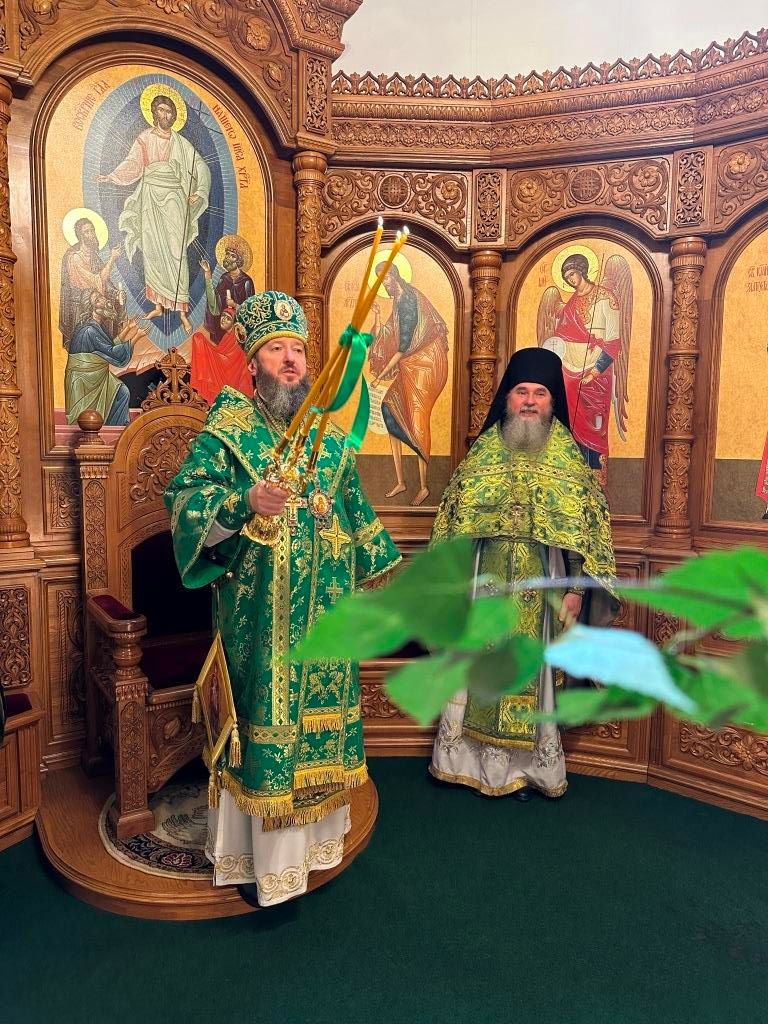Песнопения праздника Пятидесятницы и Божественной Литургии исполнял хор кафедрального собора под управлением регента Н. Романцовой. За богослужением молились прихожане кафедрального собора и насельники Свято-Троицкого монастыря, сотрудники епархиального управления. Перед началом Божественной Литургии в Свято-Троицком храме был совершен праздничный молебен с чином освящения вводы.