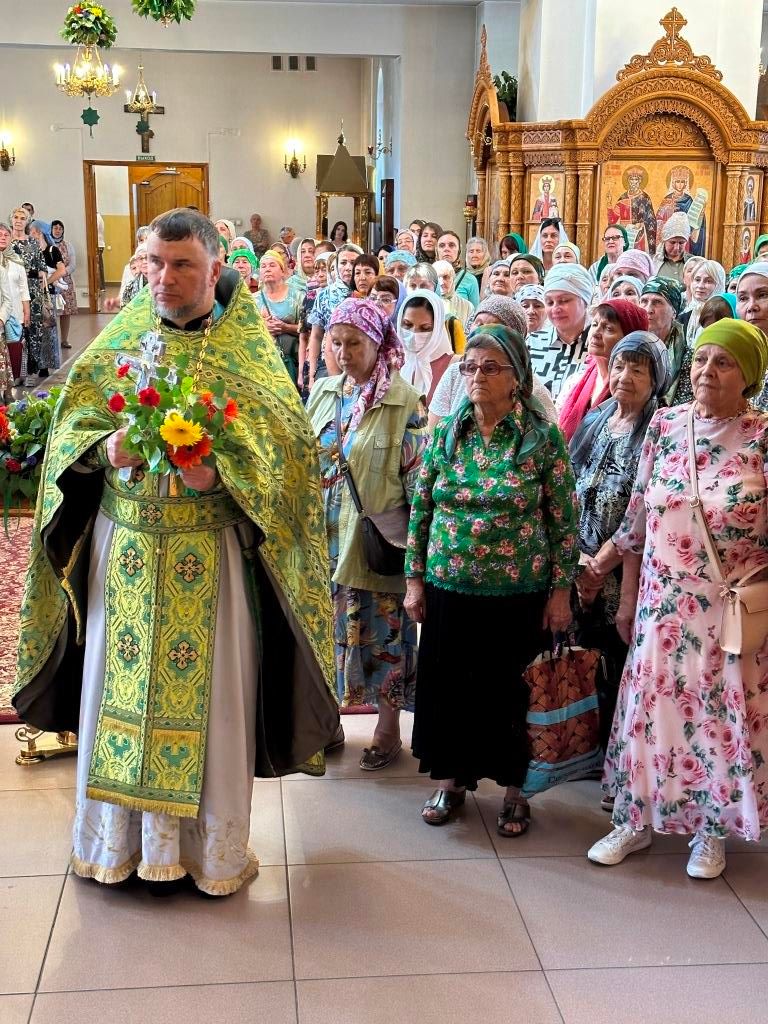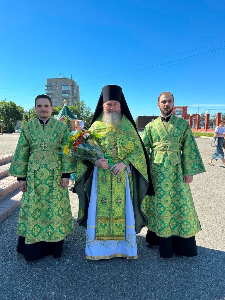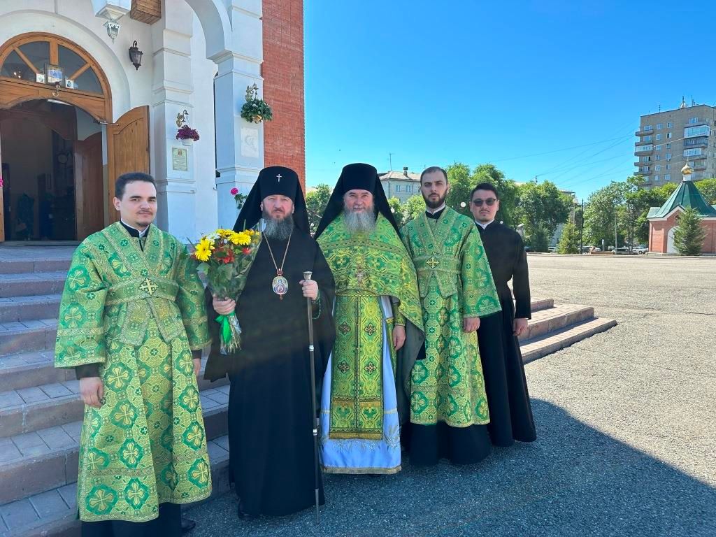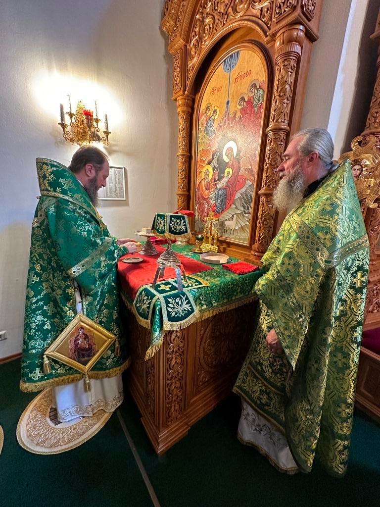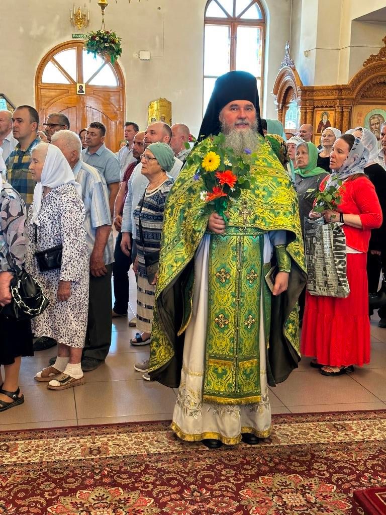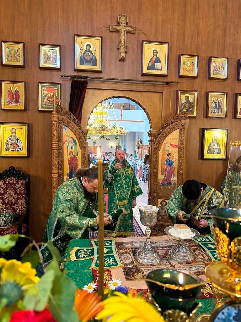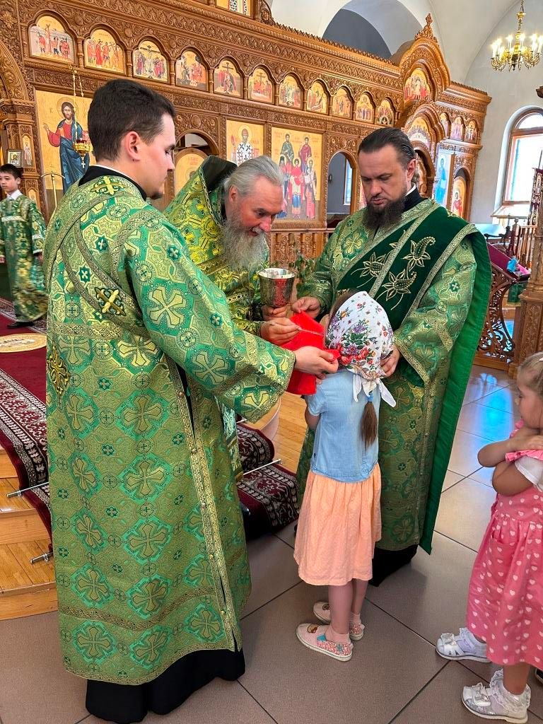 Песнопения праздника Пятидесятницы и Божественной Литургии исполнял хор кафедрального собора под управлением регента Н. Романцовой. За богослужением молились прихожане кафедрального собора и насельники Свято-Троицкого монастыря, сотрудники епархиального управления. Перед началом Божественной Литургии в Свято-Троицком храме был совершен праздничный молебен с чином освящения вводы.