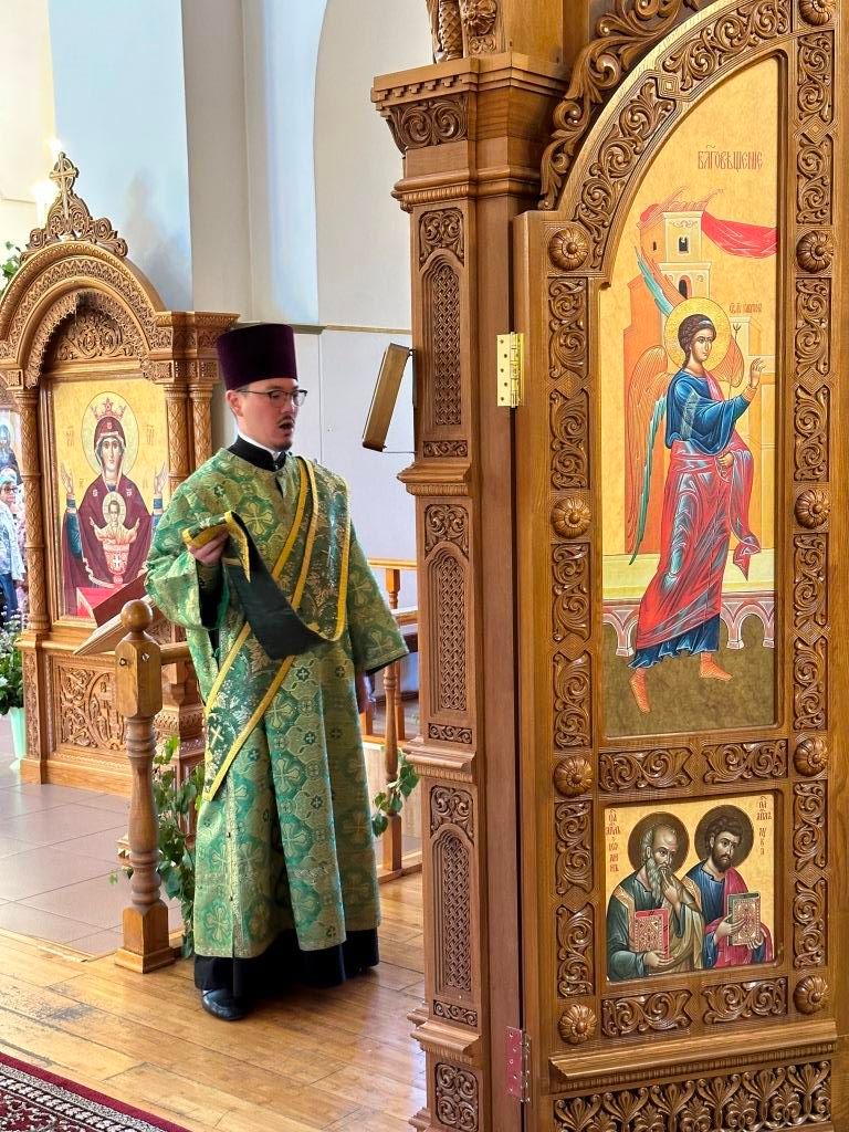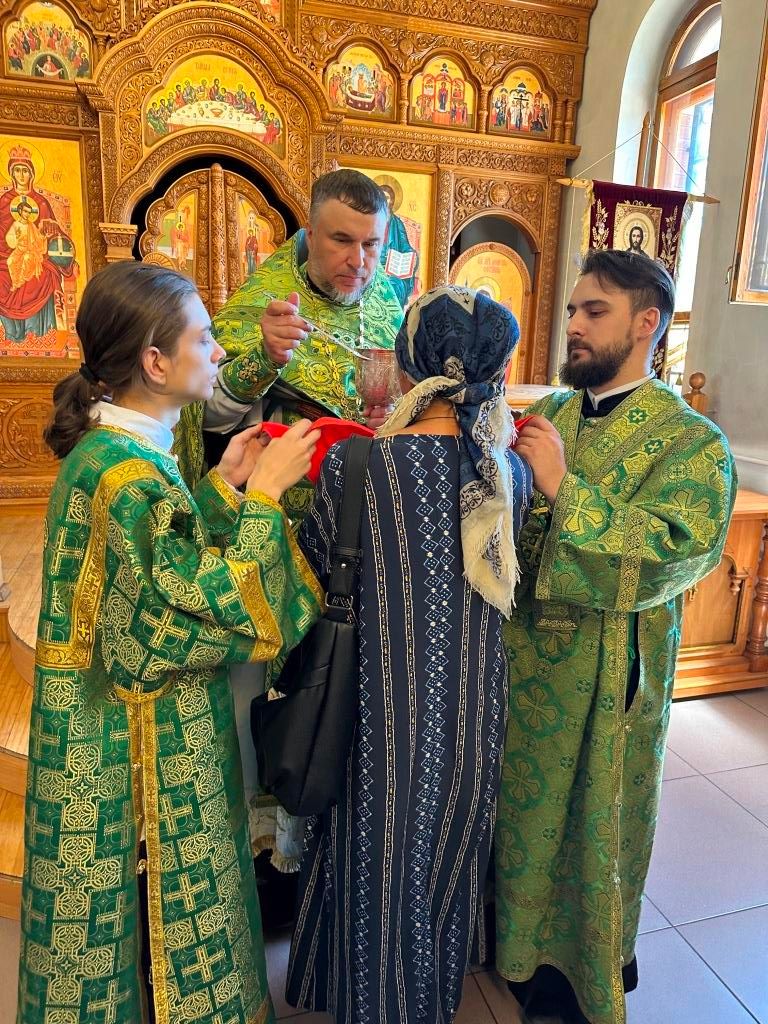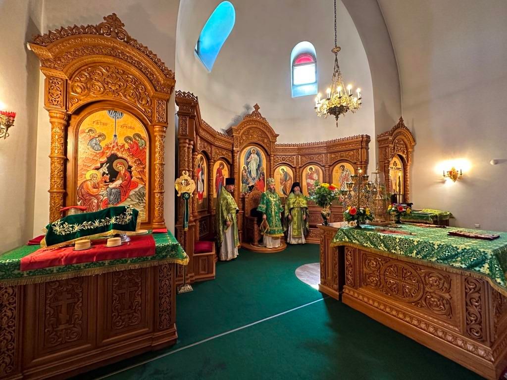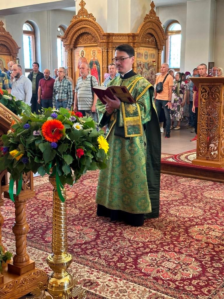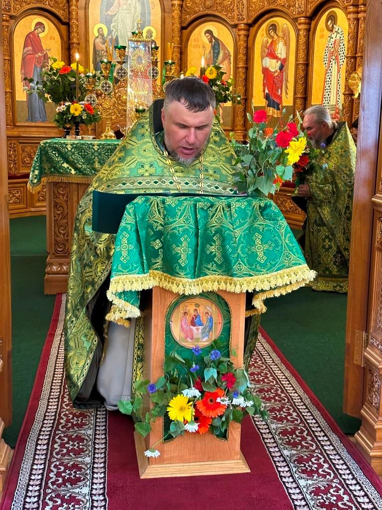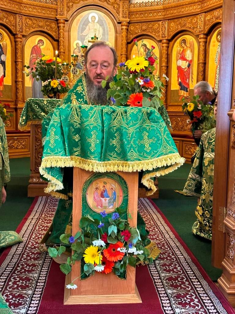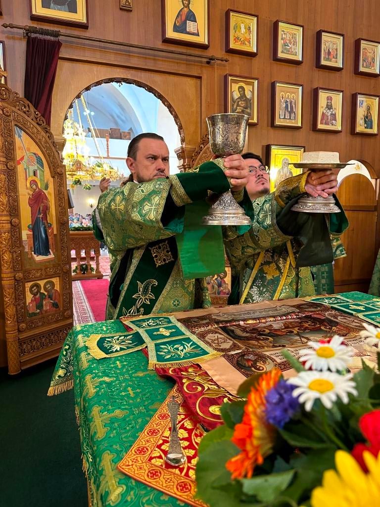 Песнопения праздника Пятидесятницы и Божественной Литургии исполнял хор кафедрального собора под управлением регента Н. Романцовой. За богослужением молились прихожане кафедрального собора и насельники Свято-Троицкого монастыря, сотрудники епархиального управления. Перед началом Божественной Литургии в Свято-Троицком храме был совершен праздничный молебен с чином освящения вводы.