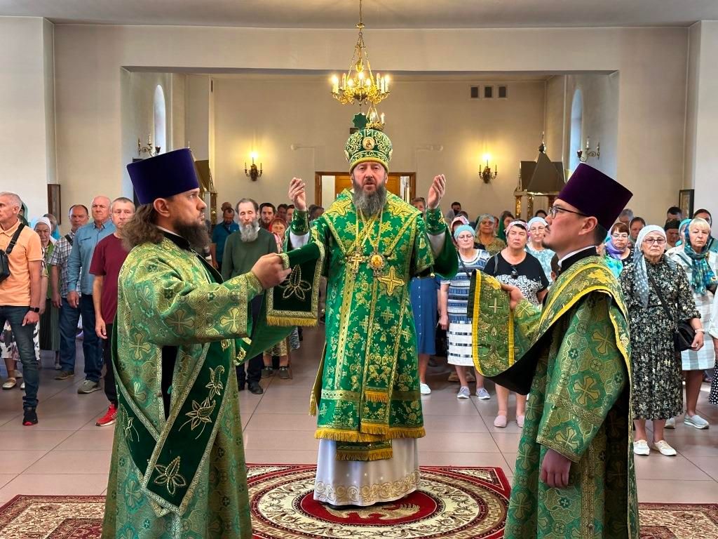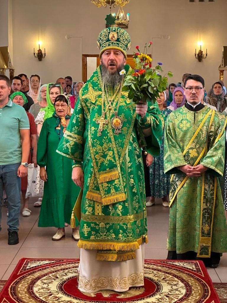 В завершение Богослужения Высокопреосвященнейший архиепископ Амфилохий поздравил всех молящихся с престольным праздником Свято-Троицкого монастыря города Усть-Каменогорска и обратился к многочисленной пастве с архипастырским словом.