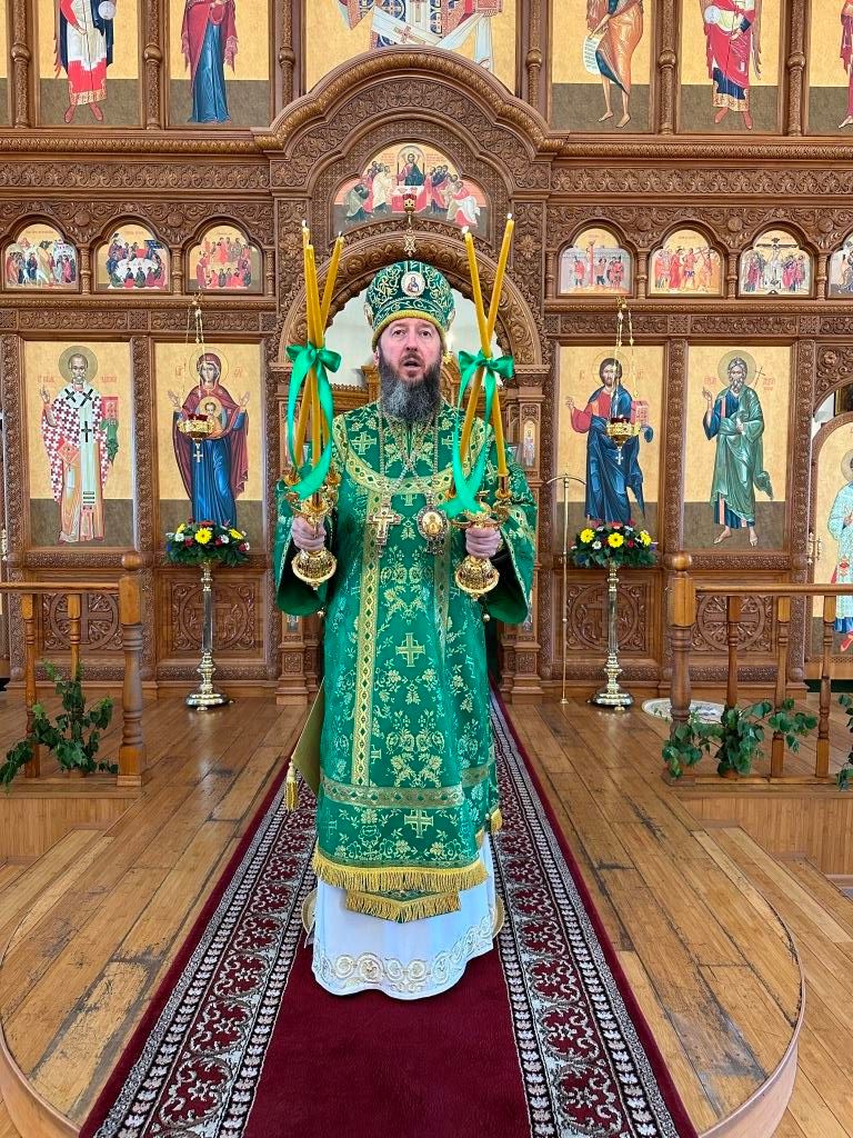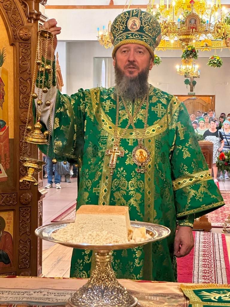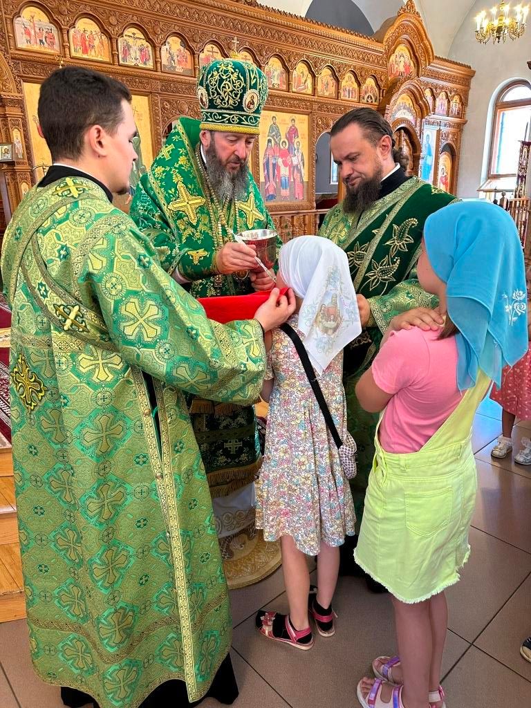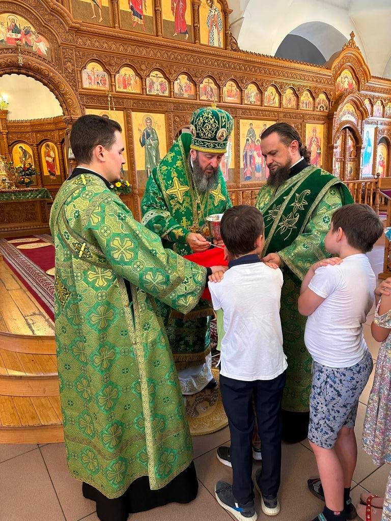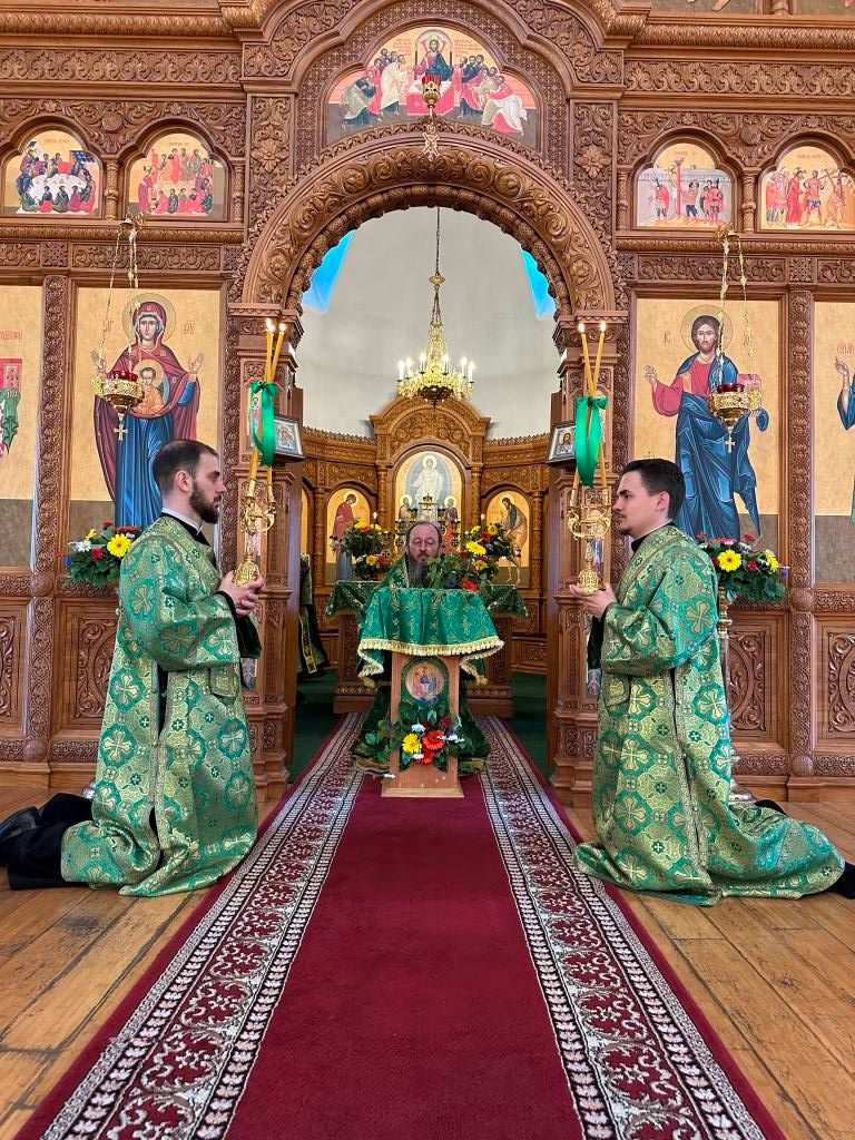 После окончания Литургии Высокопреосвященнейший архипастырь совершил Великую вечерню праздника Пятидесятницы с чтением особых коленопреклонных молитв, в котором христиане благодарят Господа Бога за Его милости и щедроты, за дары творения и испрашивают благодати Святого Духа для жизни по Евангелию Христову.