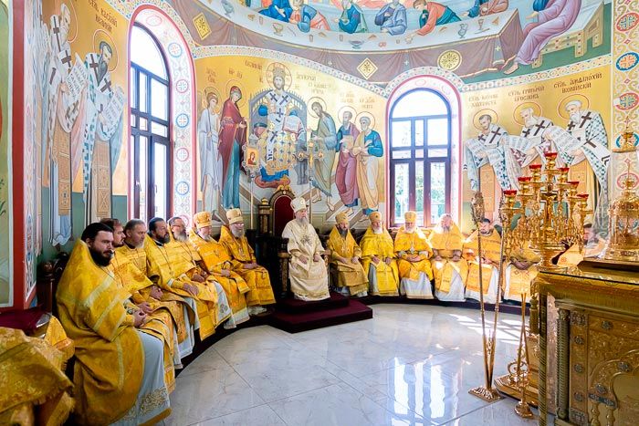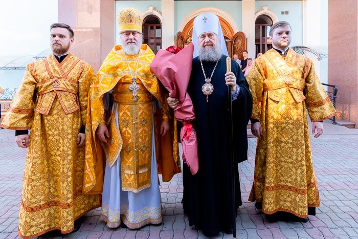 Предстоятелю Православной Церкви Казахстана сослужили: архиепископ Усть-Каменогорский и Семипалатинский Амфилохий, викарий Астанайской епархии епископ Талгарский Вениамин; благочинный храмов Алма-Аты, настоятель Никольского собора протоиерей Валерий Захаров; настоятель алма-атинского храма в честь иконы Божией Матери «Всех скорбящих Радость» протоиерей Евгений Воробьев, настоятель Петропавловского храма протоиерей Владимир Шкляр, настоятель Параскевинской церкви и Александро-Невского храма протоиерей Иоанн Лопатин, ключарь Христорождественского собора протоиерей Александр Гайченя, настоятель Богоявленского храма протоиерей Валерий Шаврин, руководитель отдела Митрополичьего округа по связям с общественностью, ключарь Вознесенского кафедрального собора Южной столицы протоиерей Александр Суворов, ключарь Петропавловского храма протоиерей Кирилл Шкляр, заместитель ключаря Вознесенского собора иерей Андрей Шкляр, протоиерей Димитрий Сидоров, руководитель личного секретариата митрополита иеромонах Прохор (Ендовицкий), проректор по воспитательной работе семинарии иерей Иоанн Ливинский; протодиакон Николай Гринкевич, протодиакон Сергий Куликов, секретарь Усть-Каменогорской епархии диакон Илия Кван, диакон Иоанн Чуркин, диакон Александр Пивень, диакон Константин Чупаченко.
