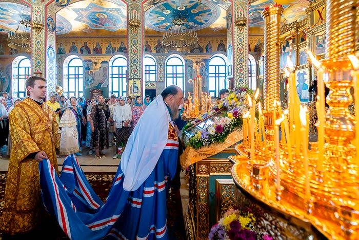 В соответствии с традицией был совершен чин освящения плодов нового урожая. Освящение новосозревших плодов в день апостолов Петра и Павла в южных регионах Казахстана и странах Центральной Азии было благословлено приснопамятным Святейшим Патриархом Алексием I (Симанским) по просьбе архипастырей южных епархии Русской Православной Церкви. Митрополит Александр обратился к участникам богослужения с архипастырским словом.