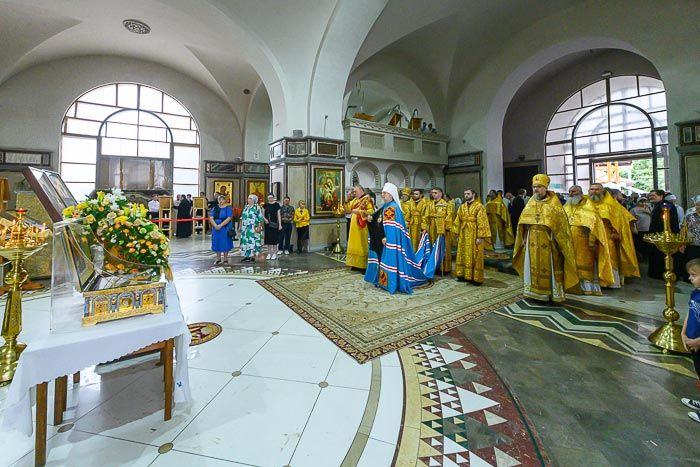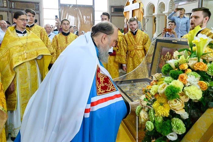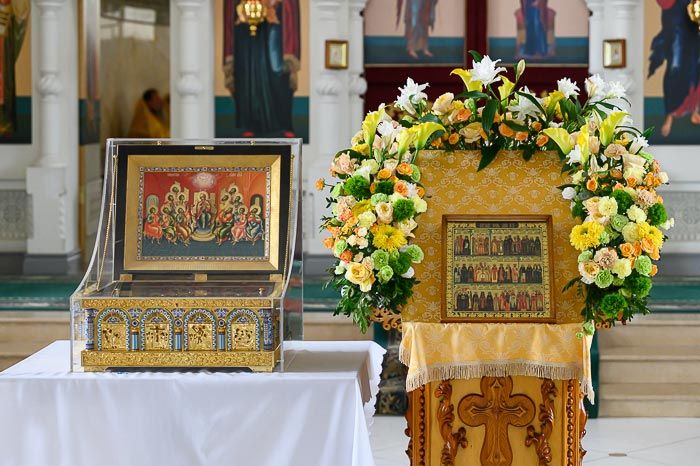 К началу богослужения для молитвенного поклонения и духовного укрепления верующих в храм был доставлен ковчег с мощами 12-ти апостолов Христовых.