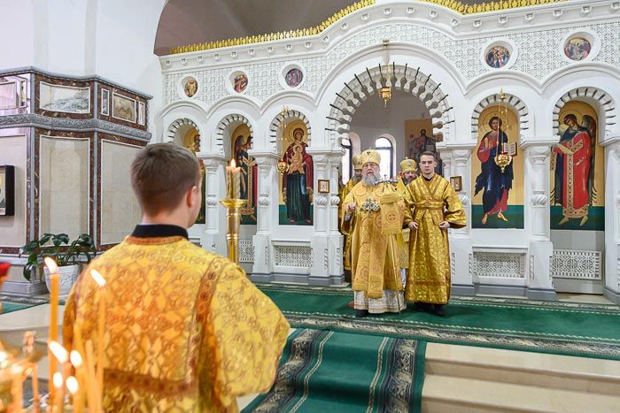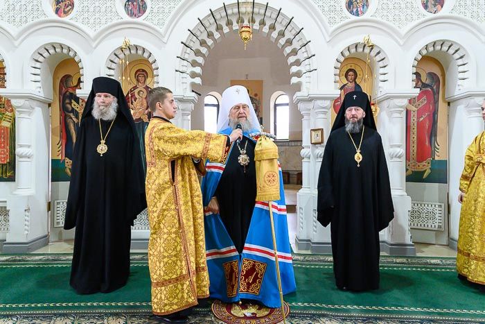 Митрополит Астанайский и Казахстанский Александр совершил Божественную Литургию в храме в честь Собора Пресвятой Богородицы города Алма-Аты.