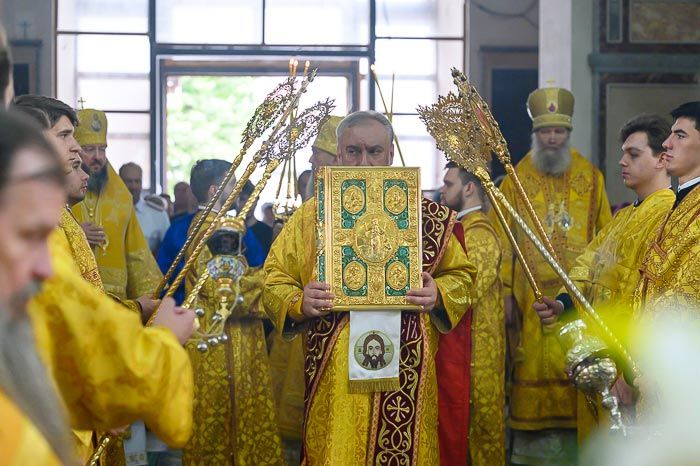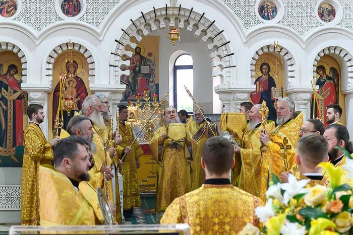 После отпуста Литургии состоялось славление апостолом Христовым перед ковчегом с их святыми мощами, после чего митрополит Александр поблагодарил сослуживших иерархов и духовенство за радость общей евхаристической молитвы у святого Престола, поздравил всех с памятью ближайших учеников Христовых и обратился к собравшимся с поучением.