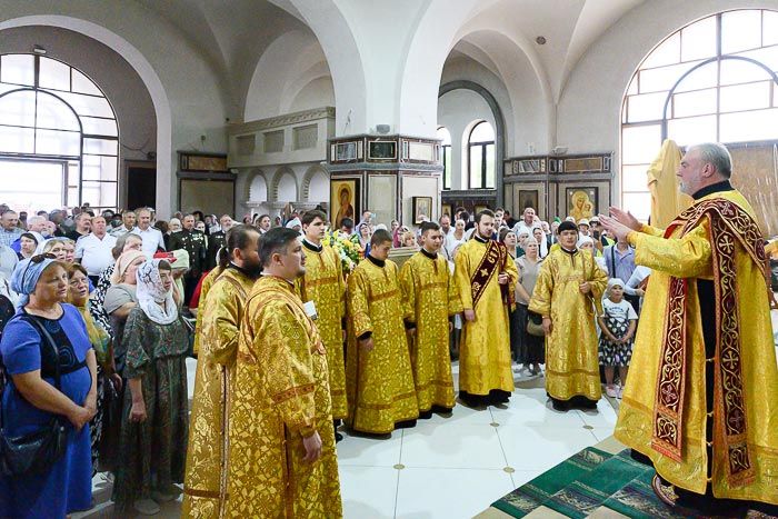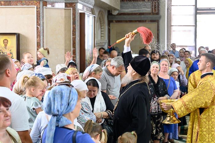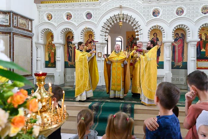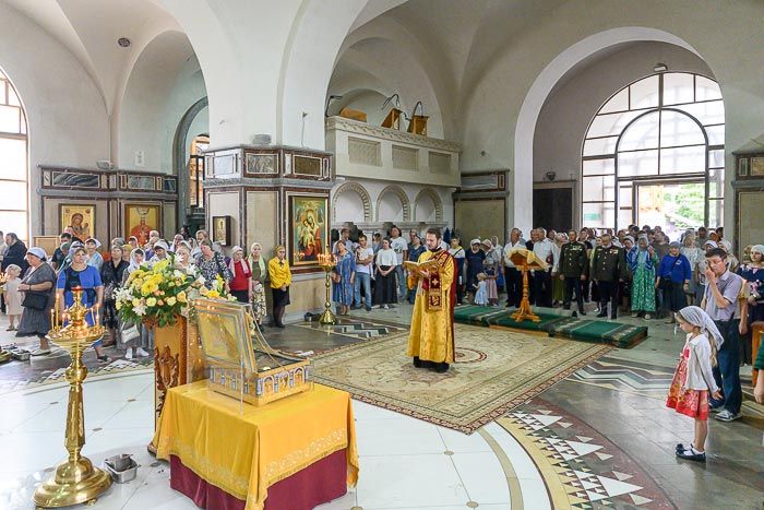 За Литургией молились: руководитель представительства Россотрудничества в Республике Казахстан М.С. Симакова, начальник отдела образовательных проектов Россотрудничества Т.В. Зубкова, преподаватели и учащиеся богословско-миссионерского факультета Алма-Атинской православной духовной семинарии, педагоги и воспитанники приходской воскресной школы имени апостола Иоанна Богослова, прихожане храма.