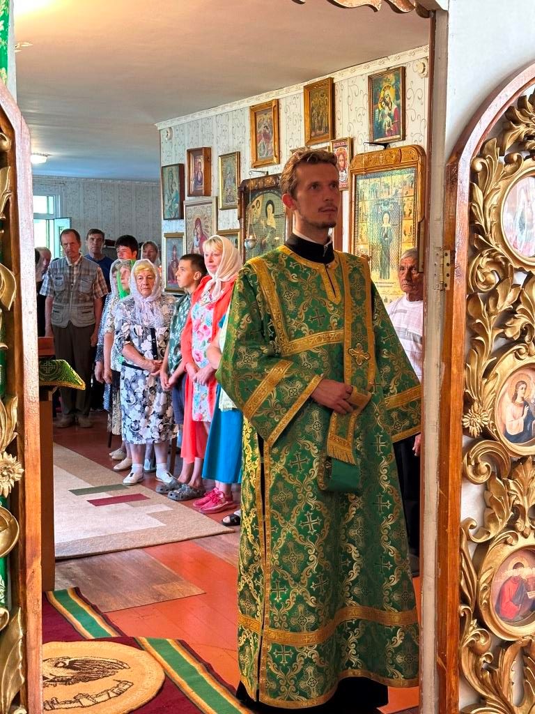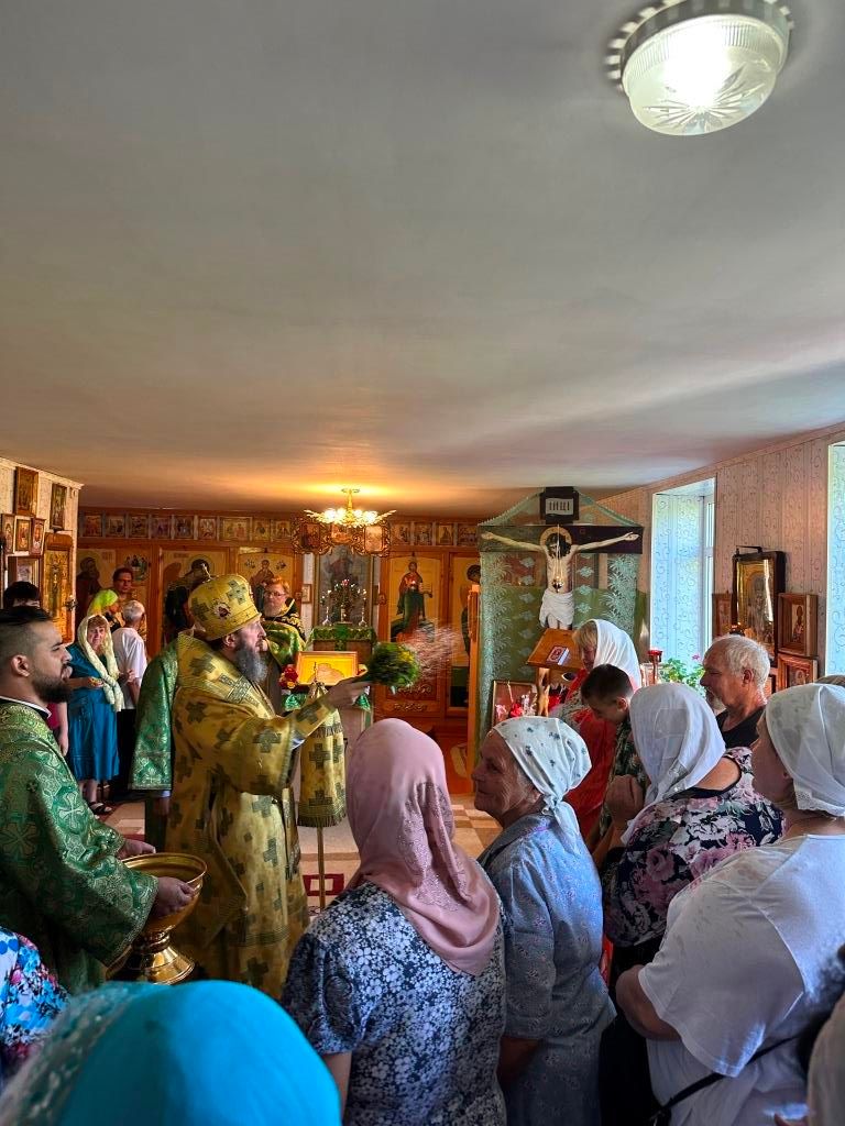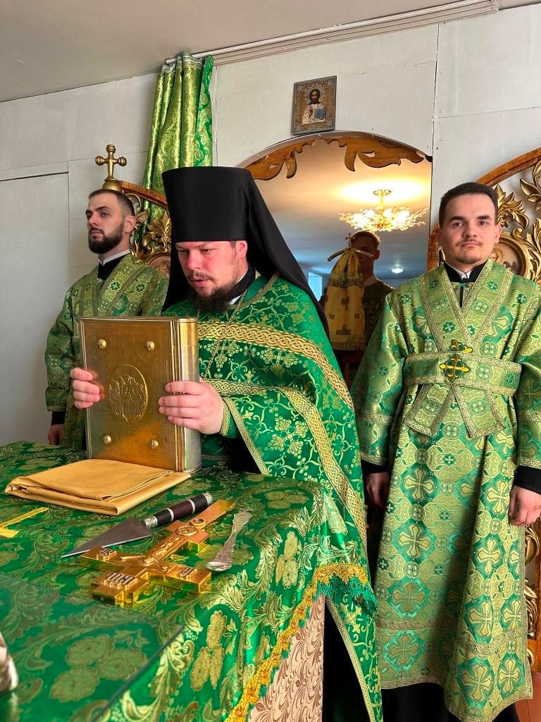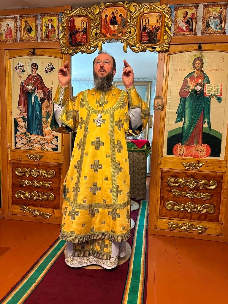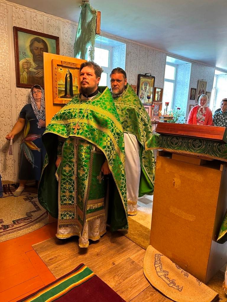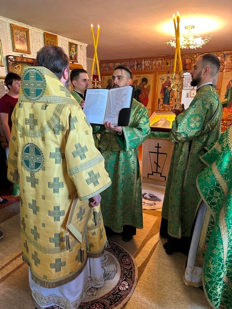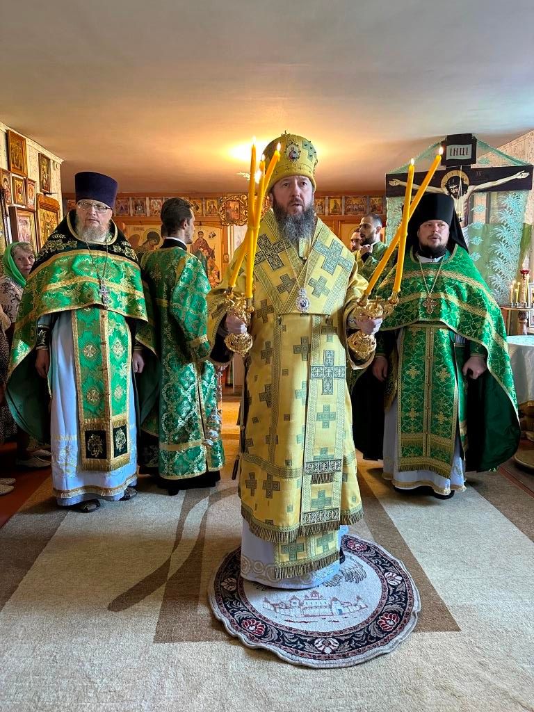Его Высокопреосвященству сослужили: благочинный Усть-Каменогорского церковного округа иеромонах Силуан (Магилев), духовник епархии протоиерей Игорь Копылов, настоятель Серафимовского храма иерей Георгий Гуцалов, секретарь епархии диакон Илия Кван, диакон Кирилл Нарушин. За праздничным богослужением молились и причащались Христовых Таин прихожане и паломники из окрестных населённых пунктов. Песнопения Божественной Литургии исполнял хор Покровского собора города Усть-Каменогорска под управлением регента А. Король.