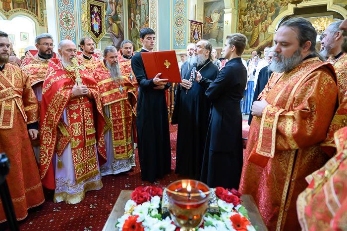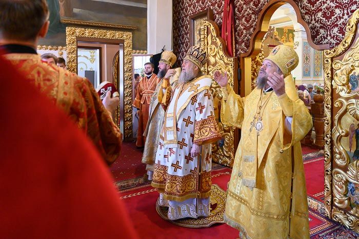 Главе Казахстанского Митрополичьего округа сослужили: архиепископ Усть-Каменогорский и Семипалатинский Амфилохий; управляющий делами Казахстанского Митрополичьего округа епископ Каскеленский Геннадий; настоятель Никольского собора, благочинный приходов Южной столицы протоиерей Валерий Захаров; настоятель Иверского храма поселка Боралдай игумен Филарет (Петроченко); настоятель Богоявленского храма протоиерей Валерий Шаврин; член Патриаршей комиссии по вопросам физической культуры и спорта игумен Филипп (Моисеев); благочинный Илийского церковного округа протоиерей Александр Зырянов; ключарь Петропавловского храма протоиерей Кирилл Шкляр; иерей Олег Насымов; проректор по воспитательной работе Алма-Атинской семинарии иерей Иоанн Ливинский; настоятель Александро-Невской церкви села Саймасай (бывш. Александровка) иерей Роман Клюев; проректор по учебной работе Алма-Атинской семинарии иерей Петр Бахтияров; руководитель личного секретариата митрополита иеромонах Прохор (Ендовицкий); ключарь Казанского собора Алма-Аты иерей Георгий Рублинский; руководитель службы протокола митрополита протодиакон Роман Головин; диакон Алексий Канушин; диакон Александр Воронин; секретарь Усть-Каменогорской епархии диакон Илия Кван; диакон Александр Пивень.