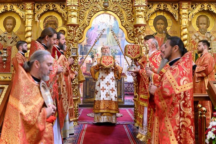 Литургические песнопения исполнял обиходный хор Никольского собора под управлением О. Соломоновой.