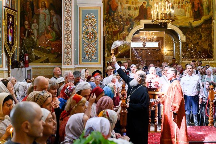 За богослужением молились: сотрудники Алма-Атинского епархиального управления во главе с секретарем Митрополичьего округа, Заслуженным деятелем искусств России О.Н. Овчинниковым; благотворители и прихожане Никольского собора, паломники из храмов Алма-Аты и Алма-Атинской области, представители Семиреченского казачества.