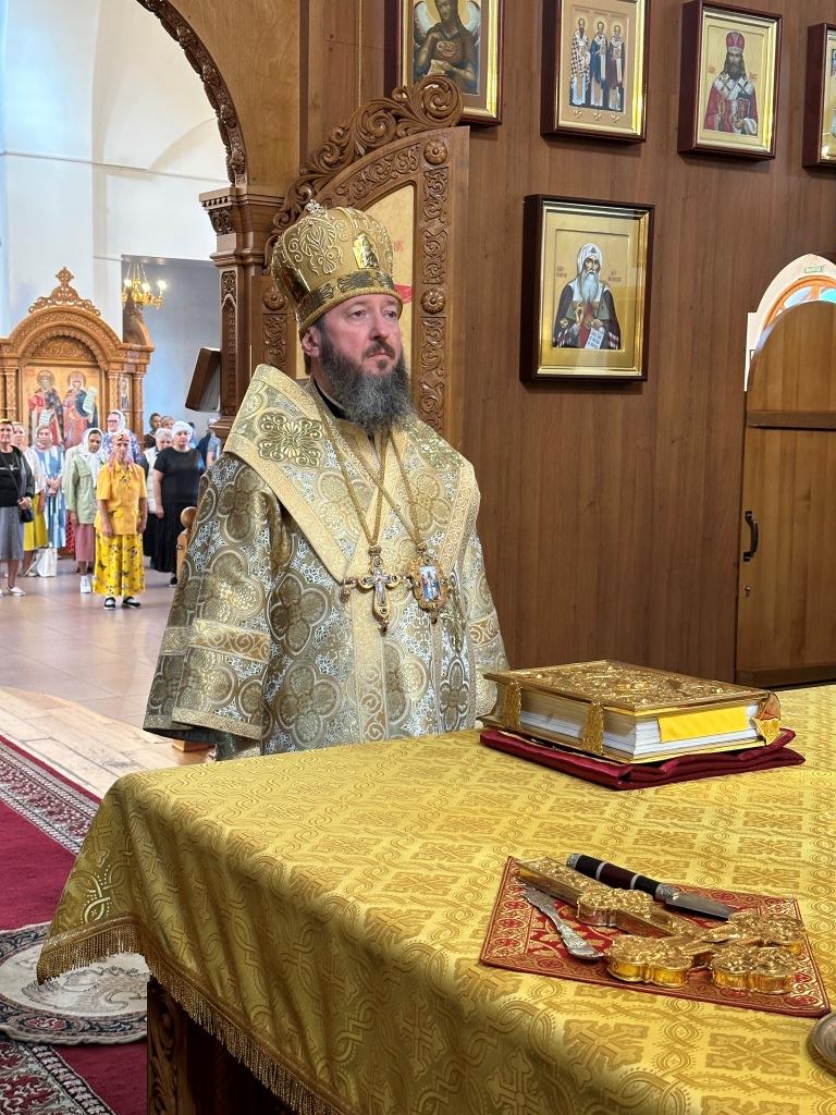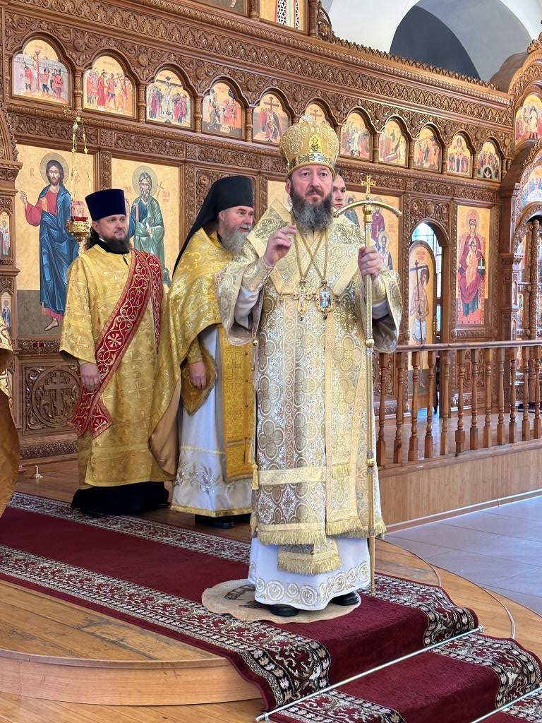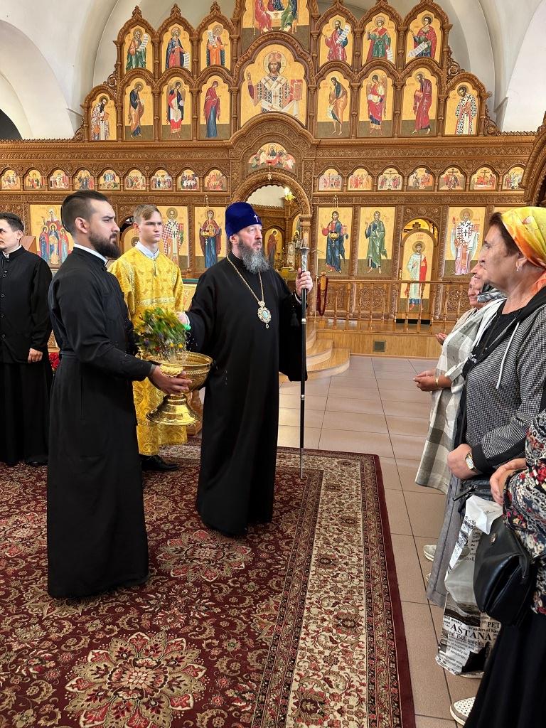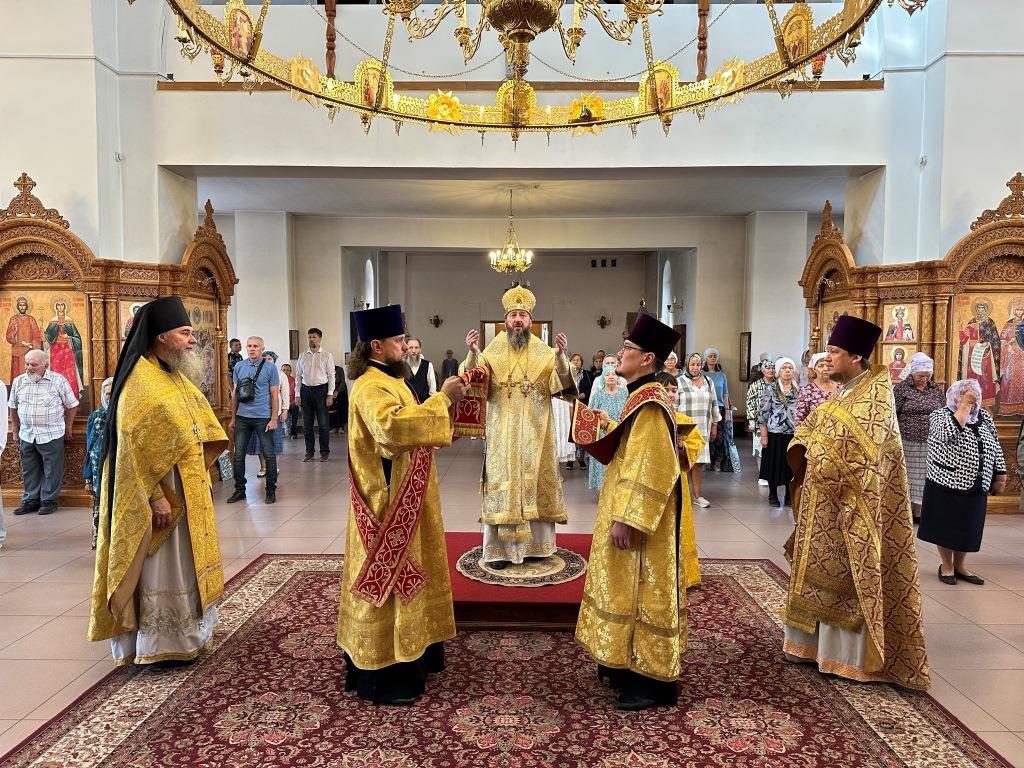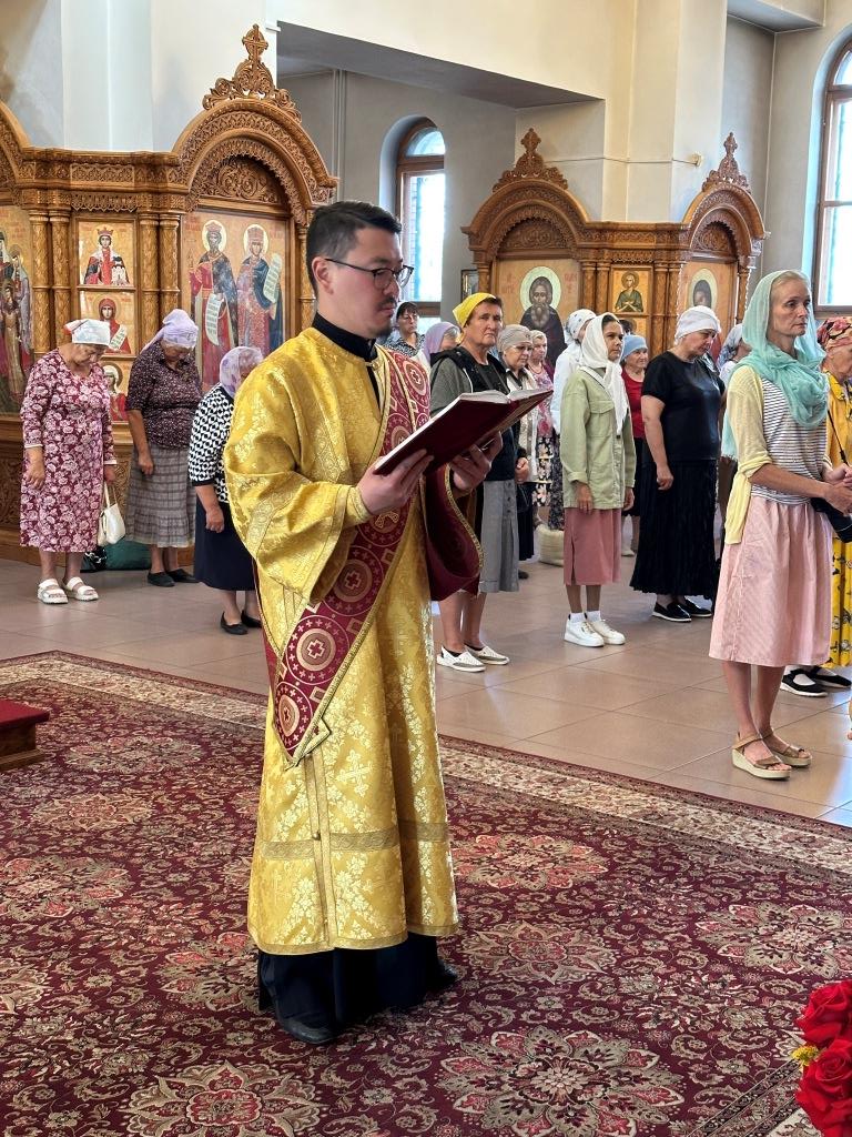 Песнопения Божественной Литургии исполнял хор Андреевского собора, регент Н. Романцова. За богослужением молились насельники Свято- Троицкого мужского монастыря города Усть-Каменогорска, сотрудники епархиального управления и прихожане главного храма епархии. Перед причастием мирян произнёс проповедь священник Роман Подрезов.