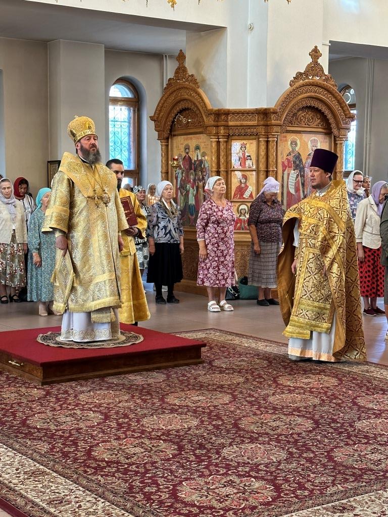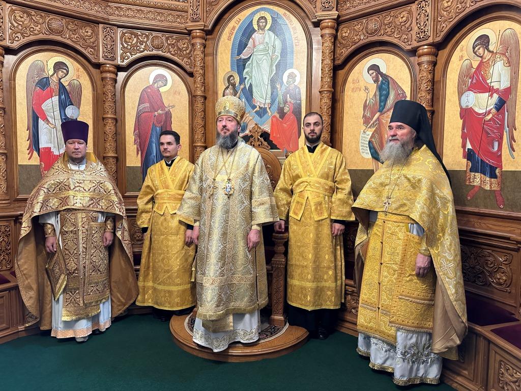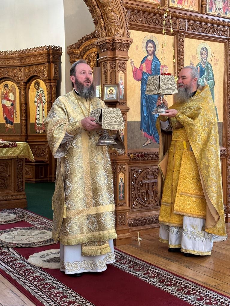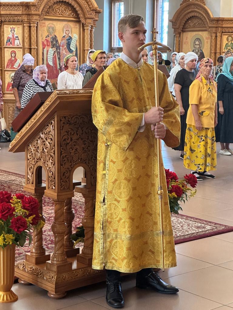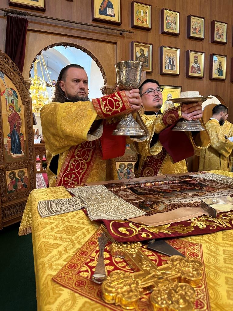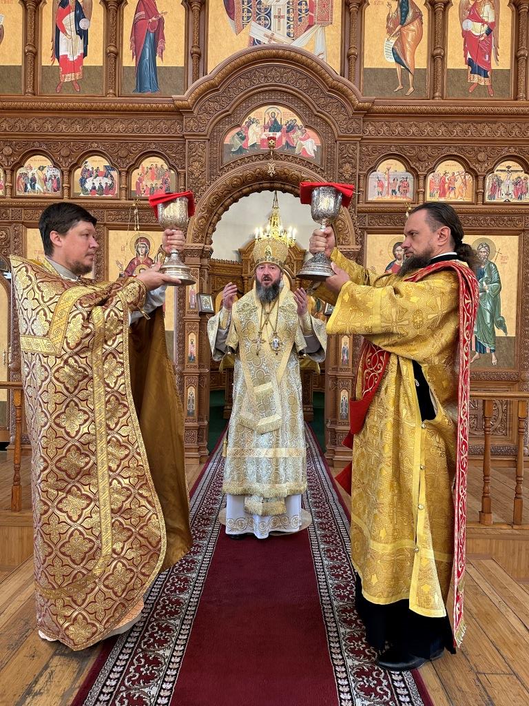 Песнопения Божественной Литургии исполнял хор Андреевского собора, регент Н. Романцова. За богослужением молились насельники Свято- Троицкого мужского монастыря города Усть-Каменогорска, сотрудники епархиального управления и прихожане главного храма епархии. Перед причастием мирян произнёс проповедь священник Роман Подрезов.