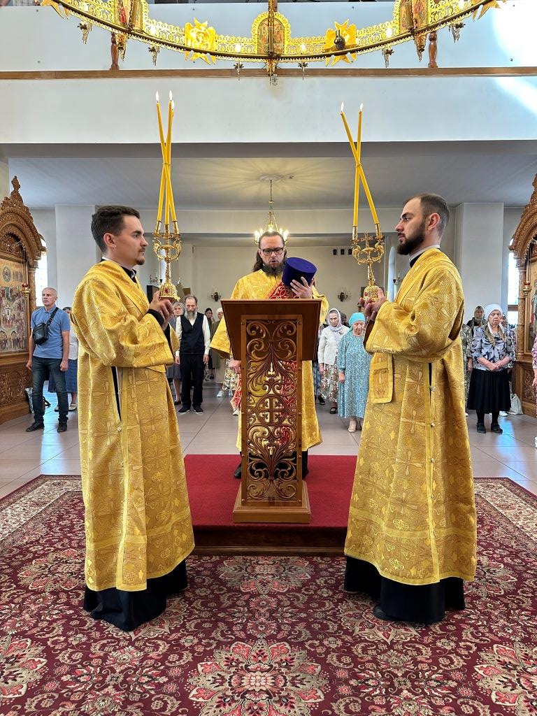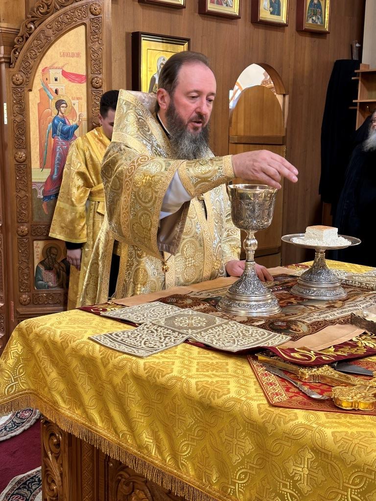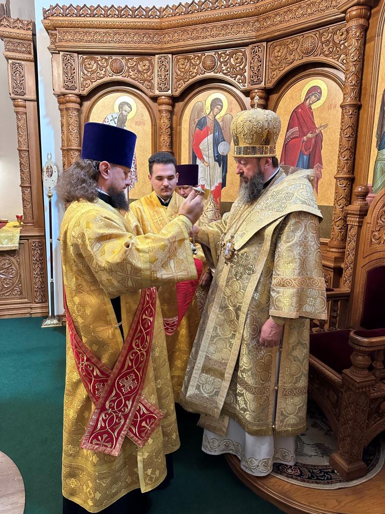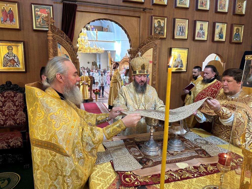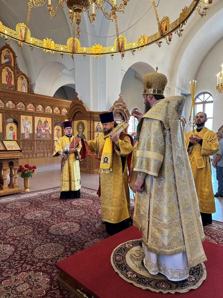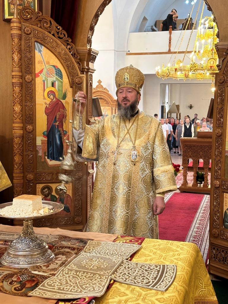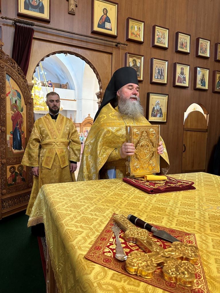 После заамвонной молитвы было совершено славление святым преподобномученикам Серафиму и Феогносту, затем Высокопреосвященнейший Владыка Амфилохий вознес им молитву. В завершение праздничной Евхаристии архиепископ Амфилохий поздравил всех прихожан с праздником и обратился к пастве со словами святительского поучения.