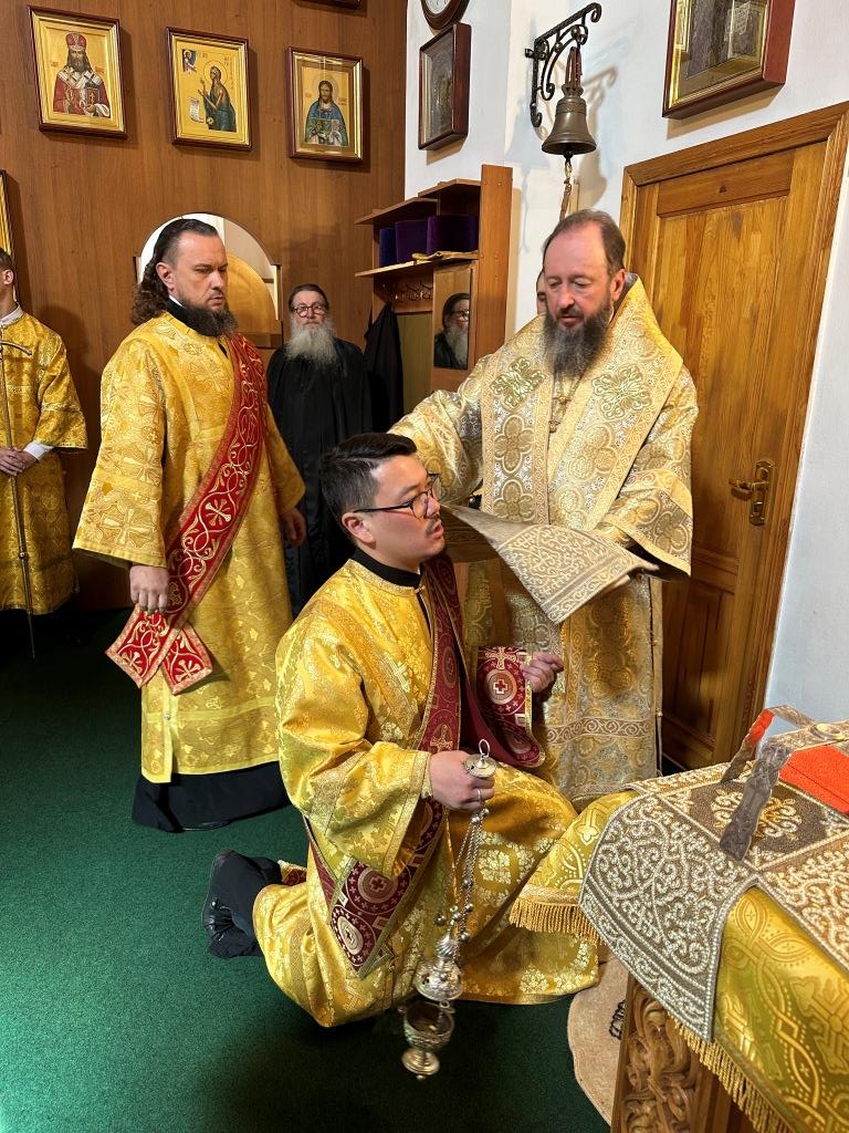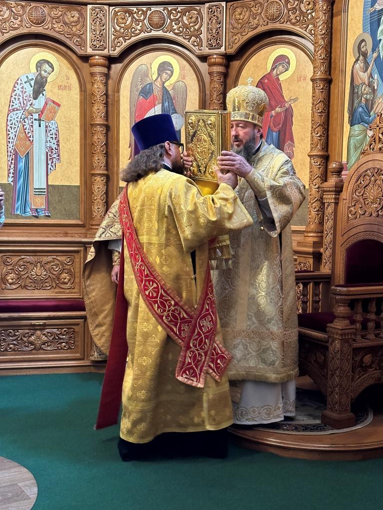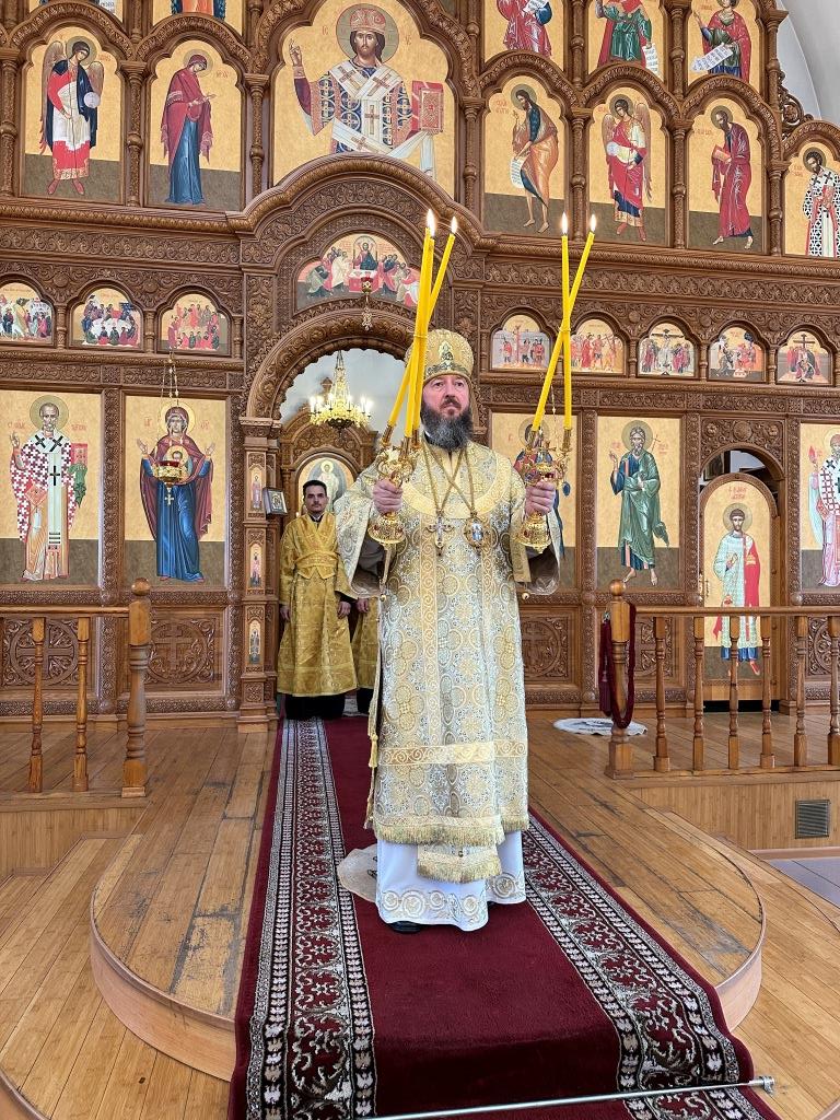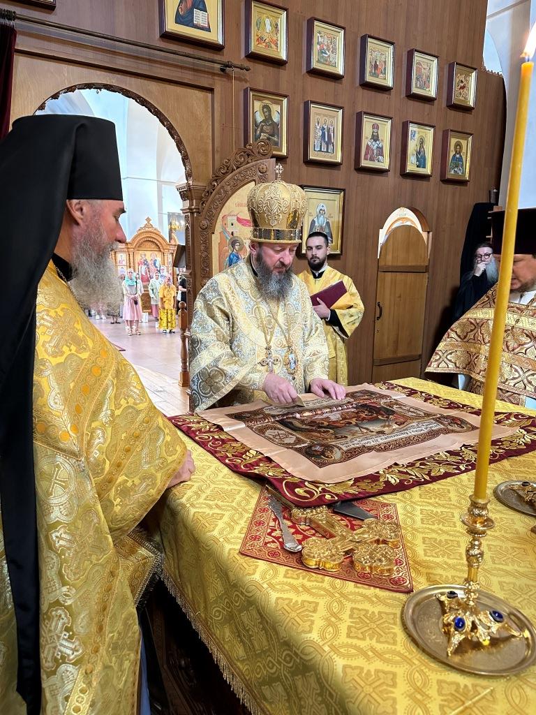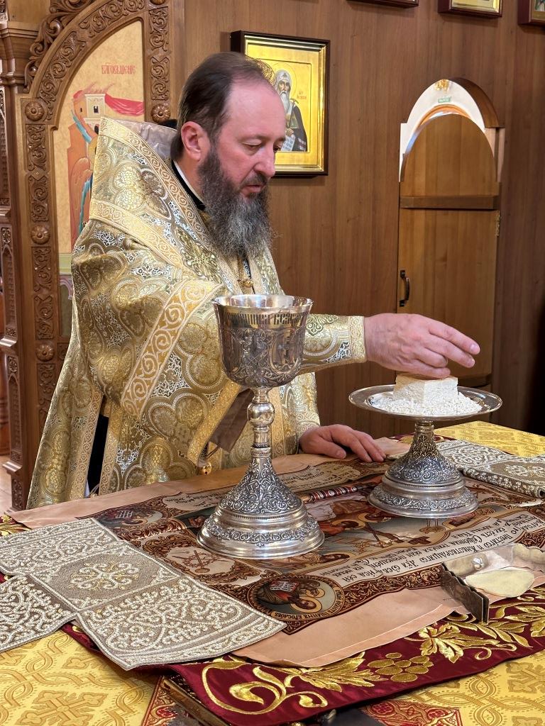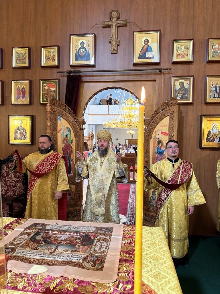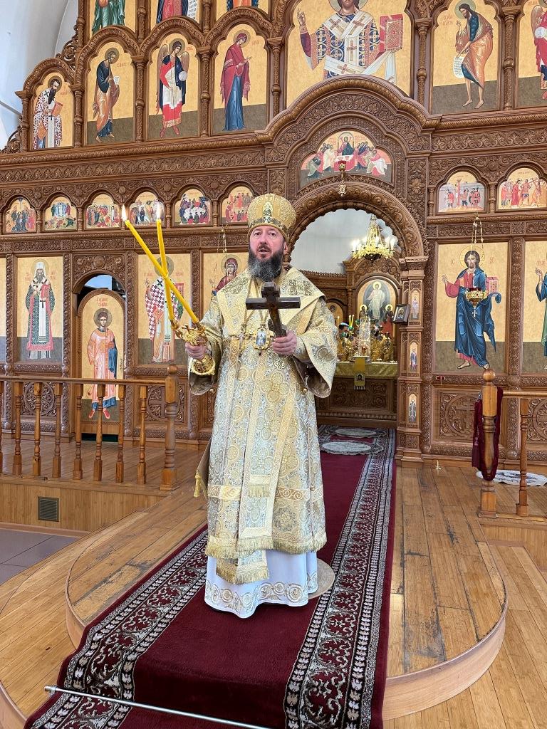 После заамвонной молитвы было совершено славление святым преподобномученикам Серафиму и Феогносту, затем Высокопреосвященнейший Владыка Амфилохий вознес им молитву. В завершение праздничной Евхаристии архиепископ Амфилохий поздравил всех прихожан с праздником и обратился к пастве со словами святительского поучения.