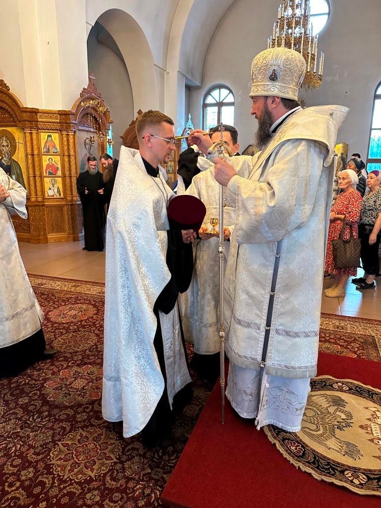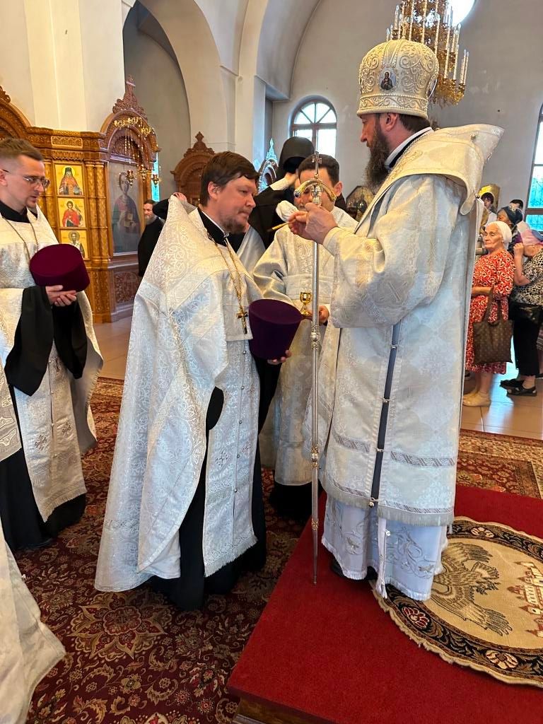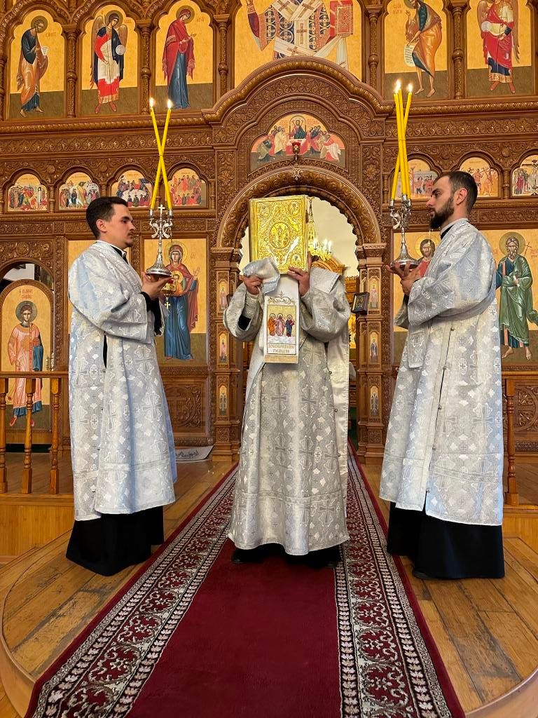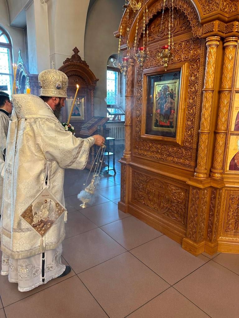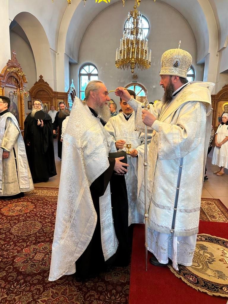 За богослужением совершалась лития – сугубое моление с освящением хлеба, пшеницы, вина и елея. После чтения праздничного евангельского зачала архиепископ Амфилохий помазал клир и паству освященным елеем.
