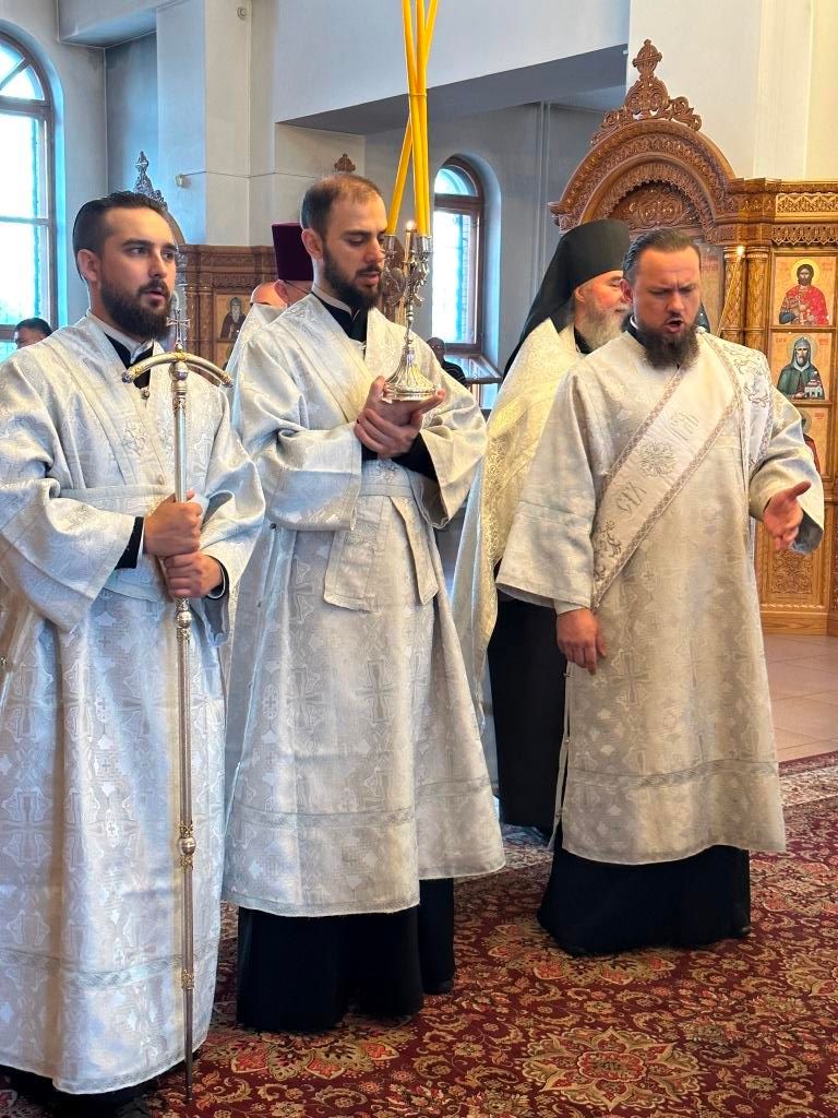 Его Высокопреосвященству сослужили: ключарь Андреевского кафедрального собора иеромонах Никодим (Авдеев), клирики Андреевского собора иерей Роман Подрезов и иерей Константин Дьяков, секретарь епархии диакон Илия Кван, протодиакон Андрей Дудник. Хор под управлением регента Н. Романцовой исполнял богослужебные песнопения Всенощного бдения и праздника Преображения Господня.